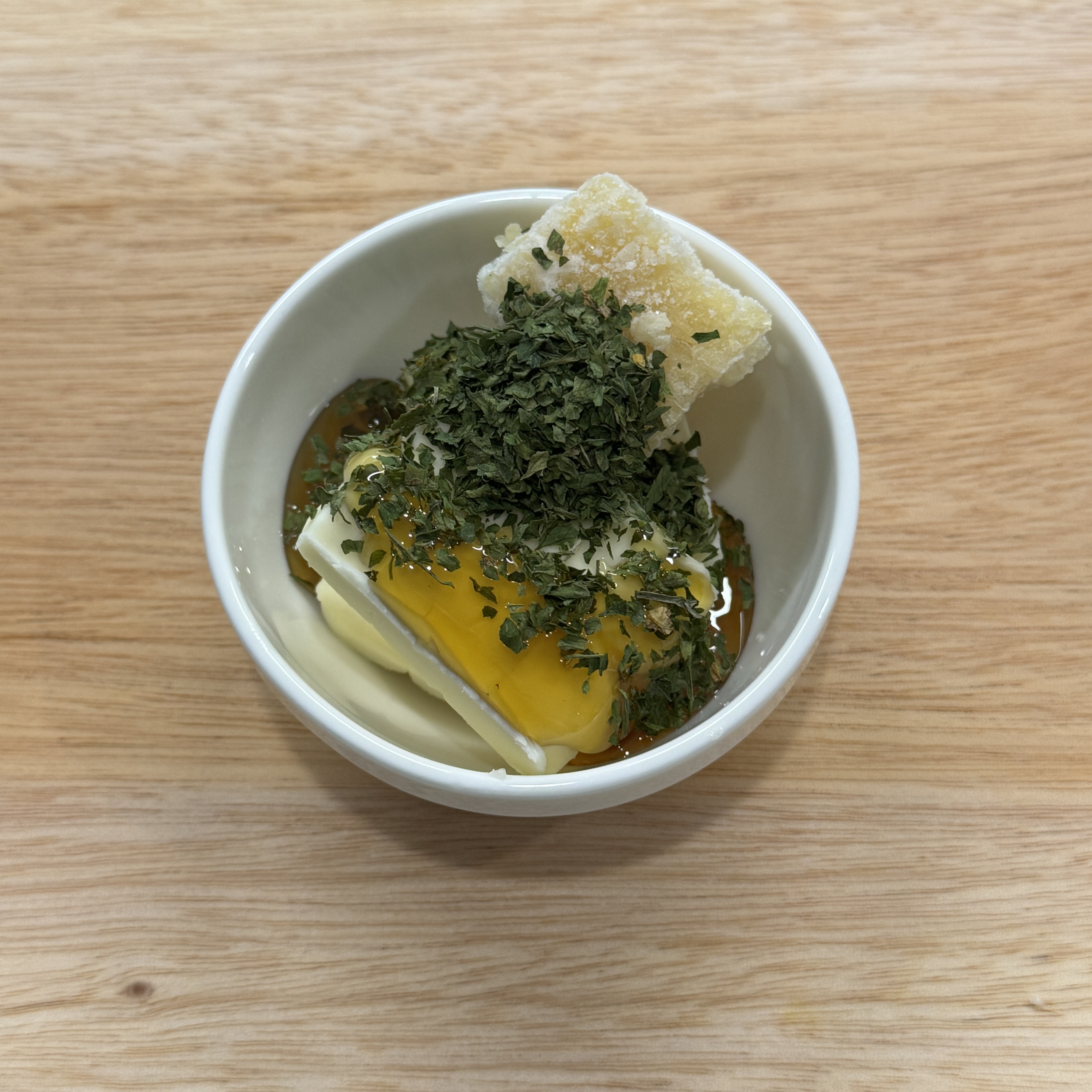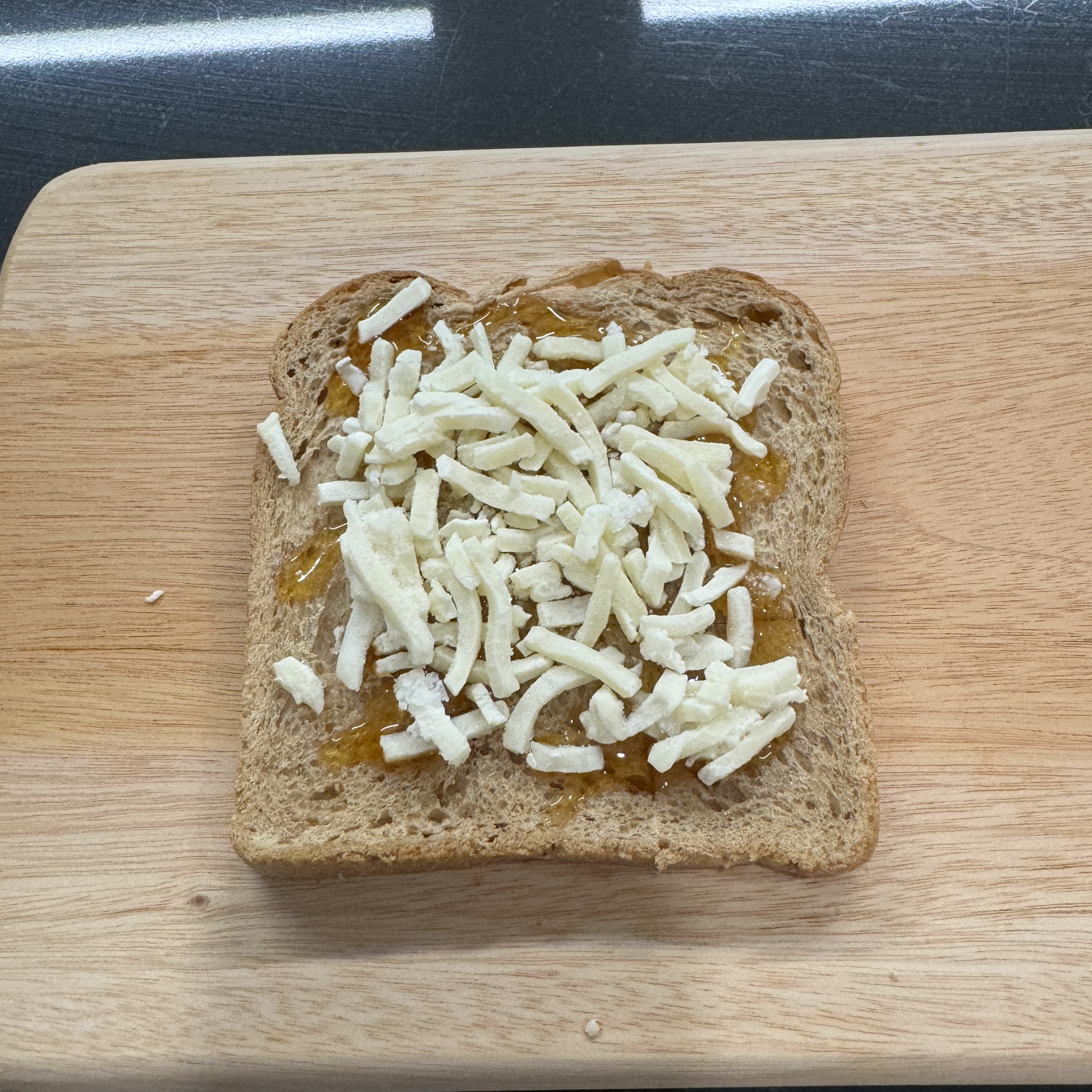 3. 꿀을 1스푼 먼저 발라주고 그 위에 치즈를 올립니다.