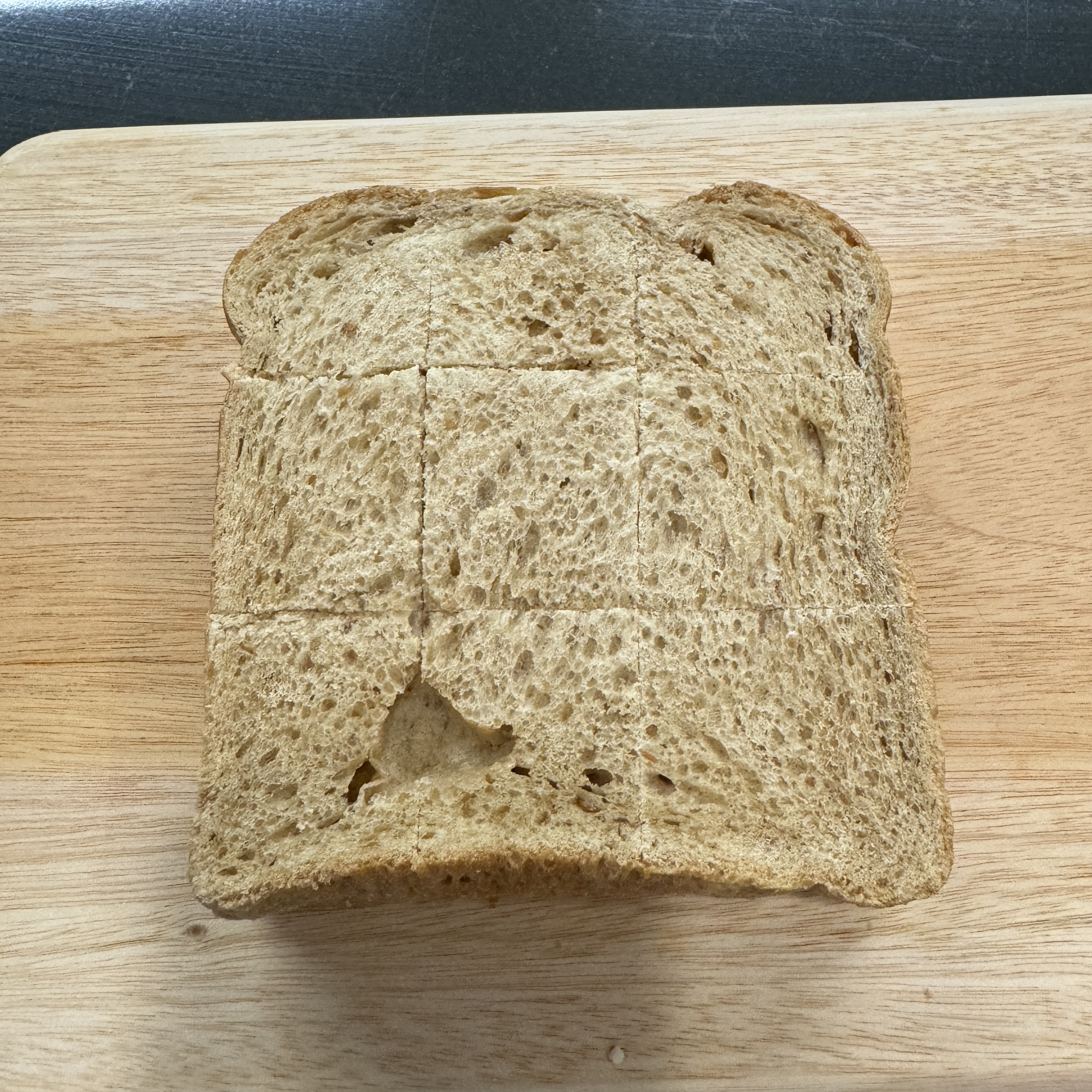 2. 사진상으로 보이는 결대로 식빵 1개에 칼집을 내줍니다.