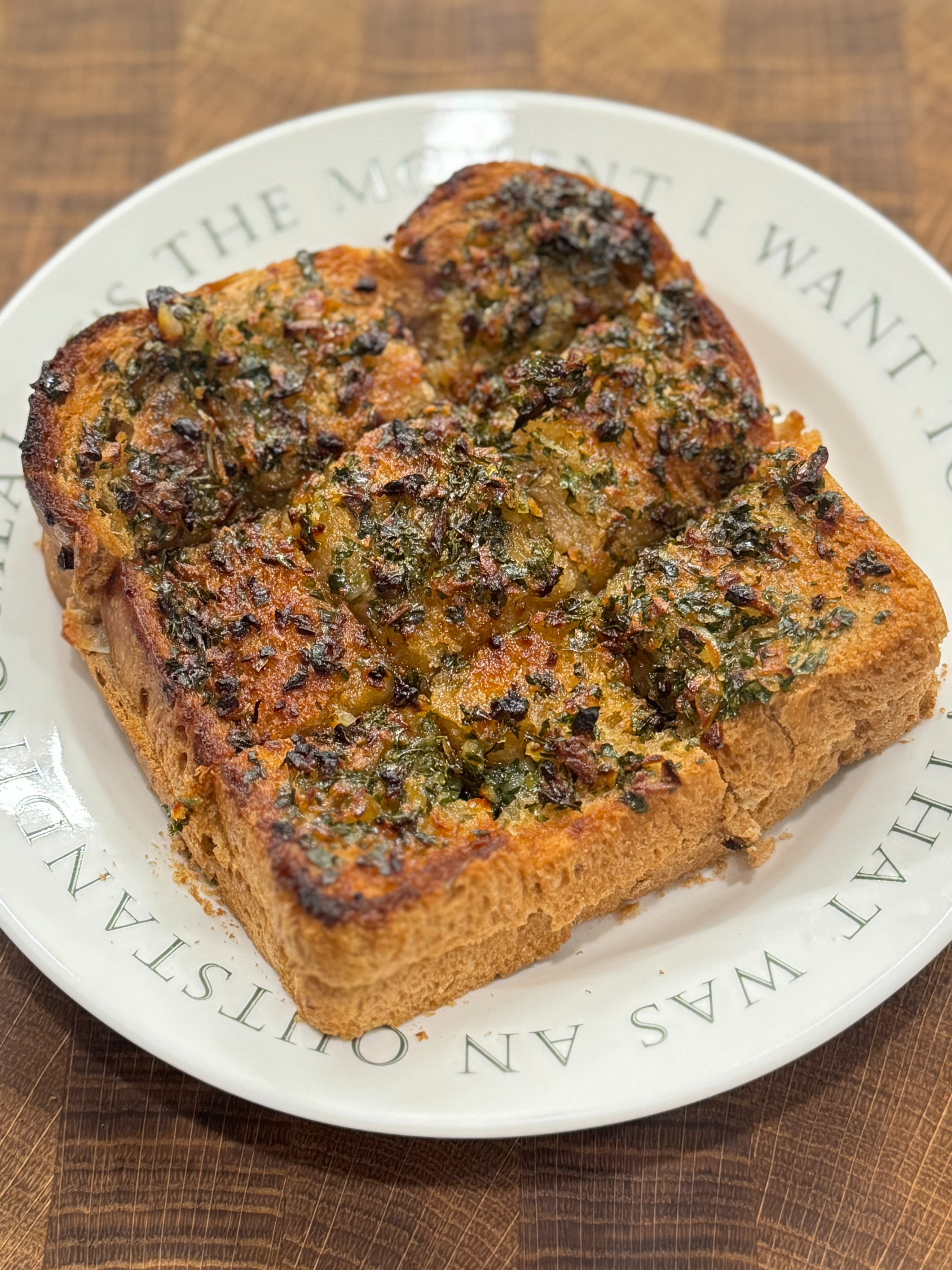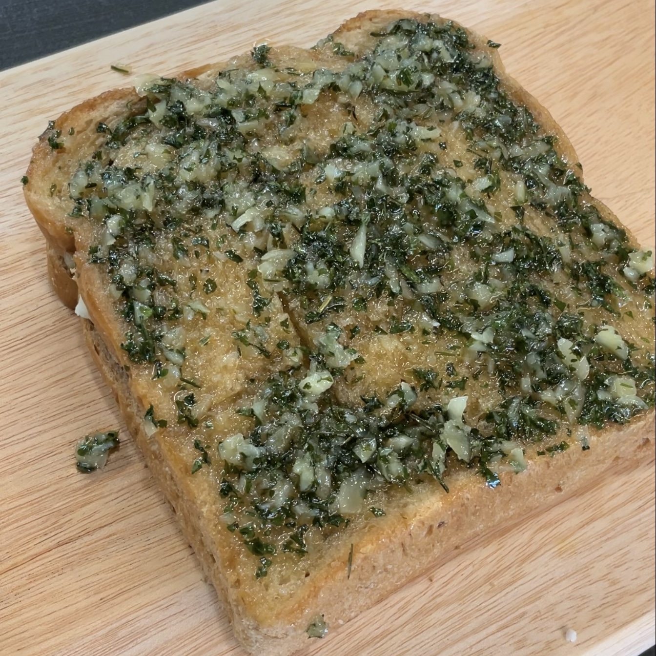 통밀식빵 2개, 무염버터 2-3개, 다진 마늘