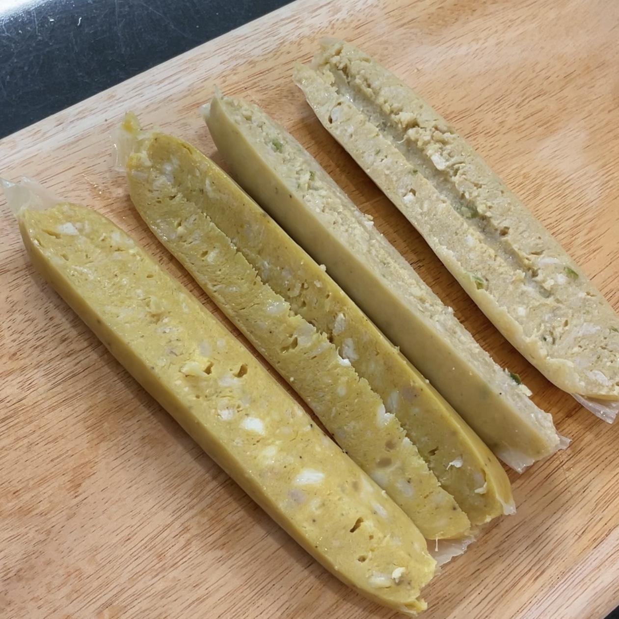 3. 닭가슴살 소세지를 2개를 반으로 잘라준다.