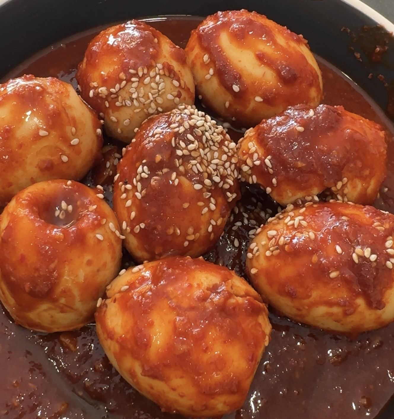 4. 계란 8개를 넣고 수분이 날라갈 때까지