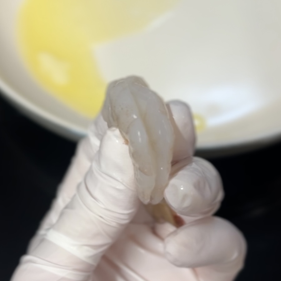 냉동새우는 찬물에 해동시켜 등집에 칼집을 내준다.