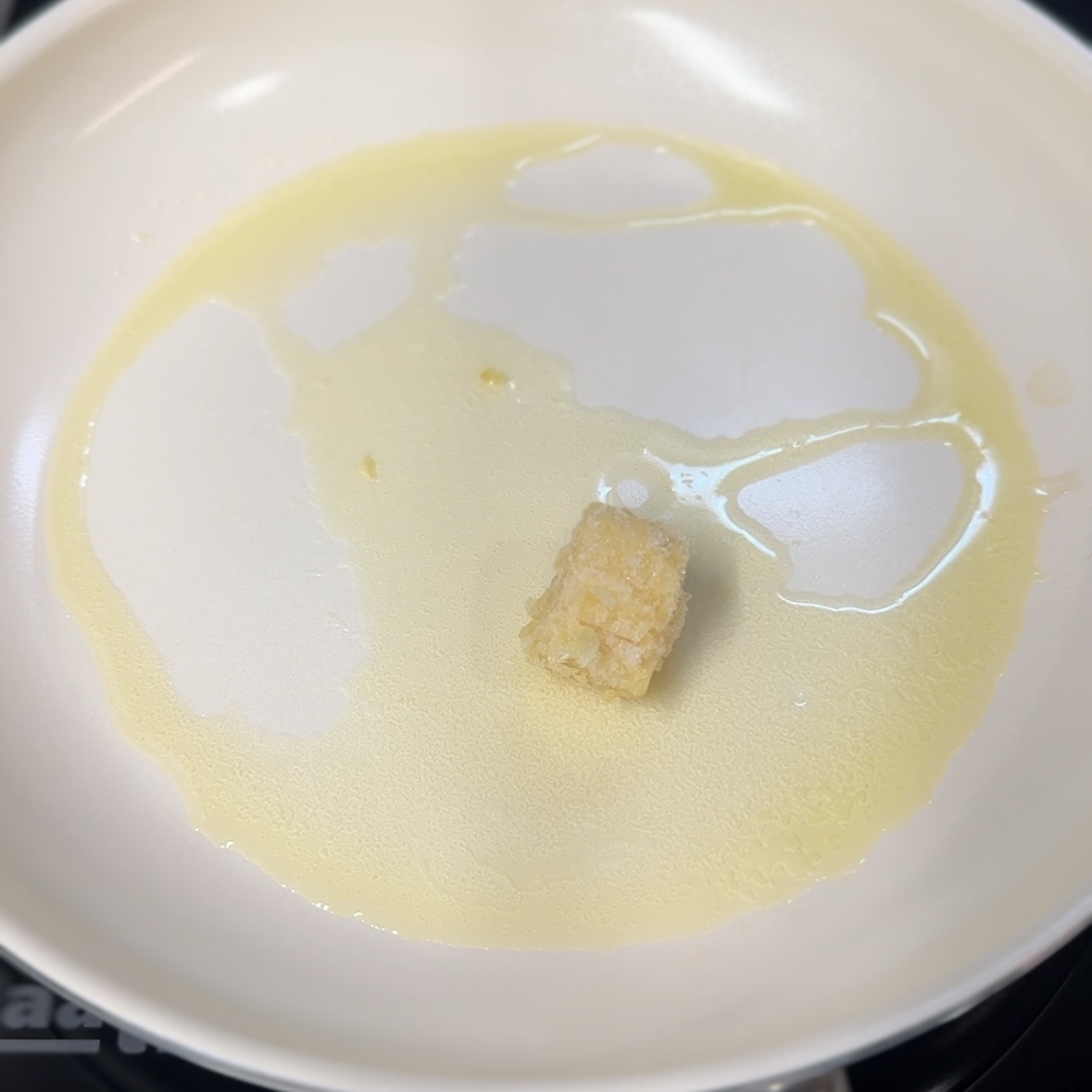 2. 무염버터 10g과 다진마늘 1스푼을 볶아준다음
