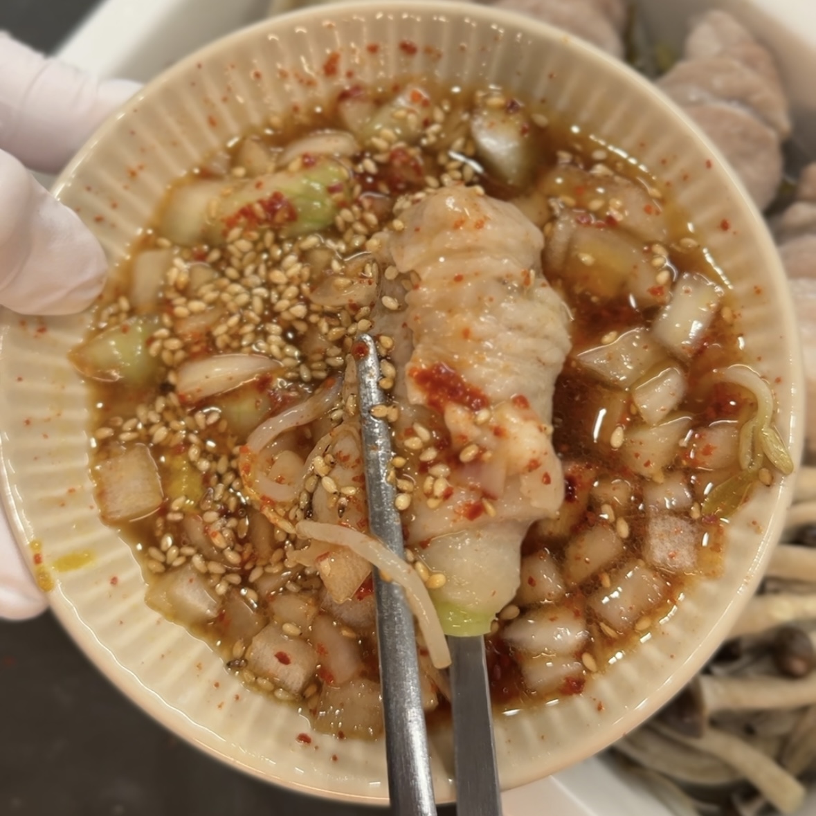 뿌려서 양념장을 만들어줍니다.
