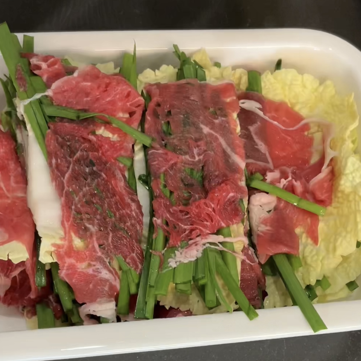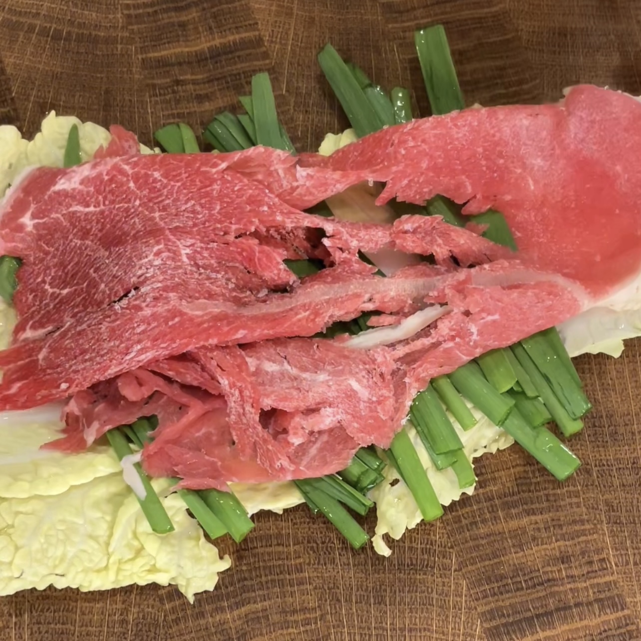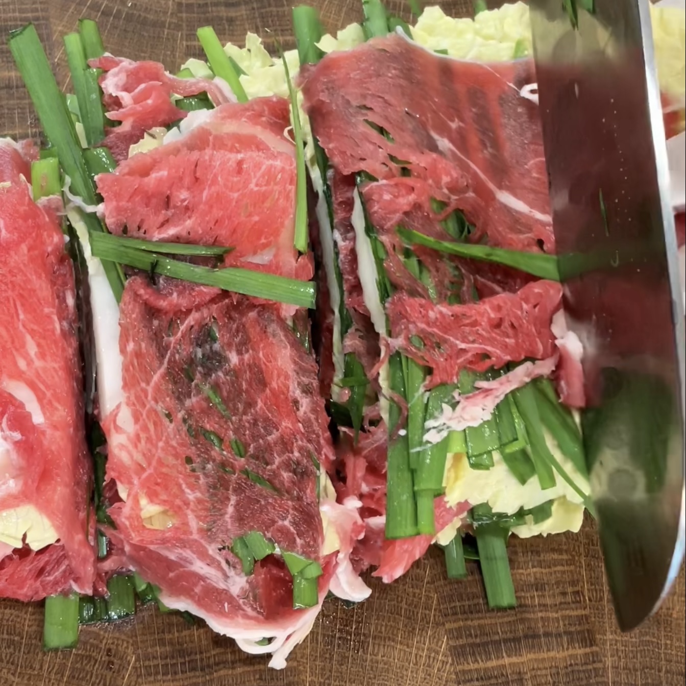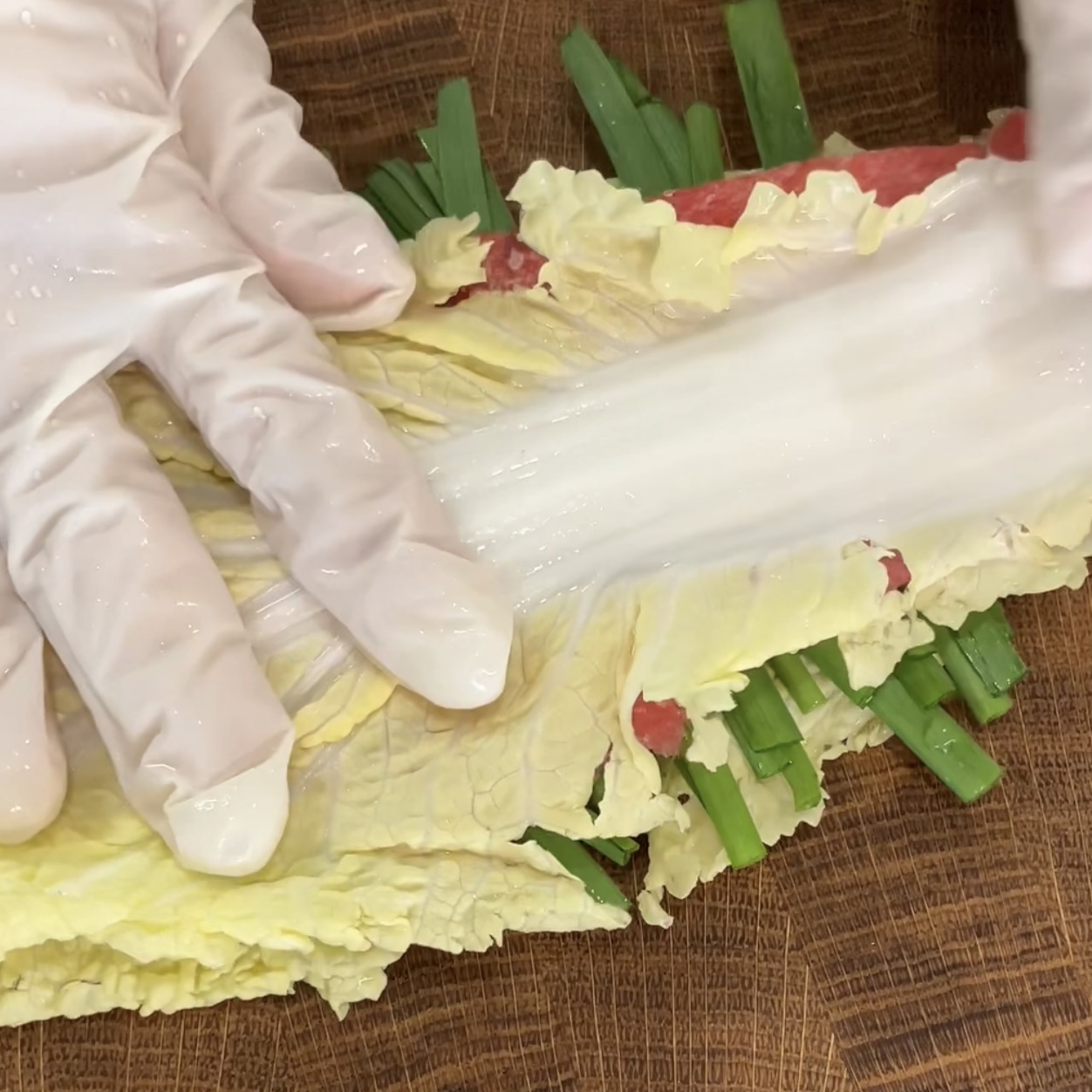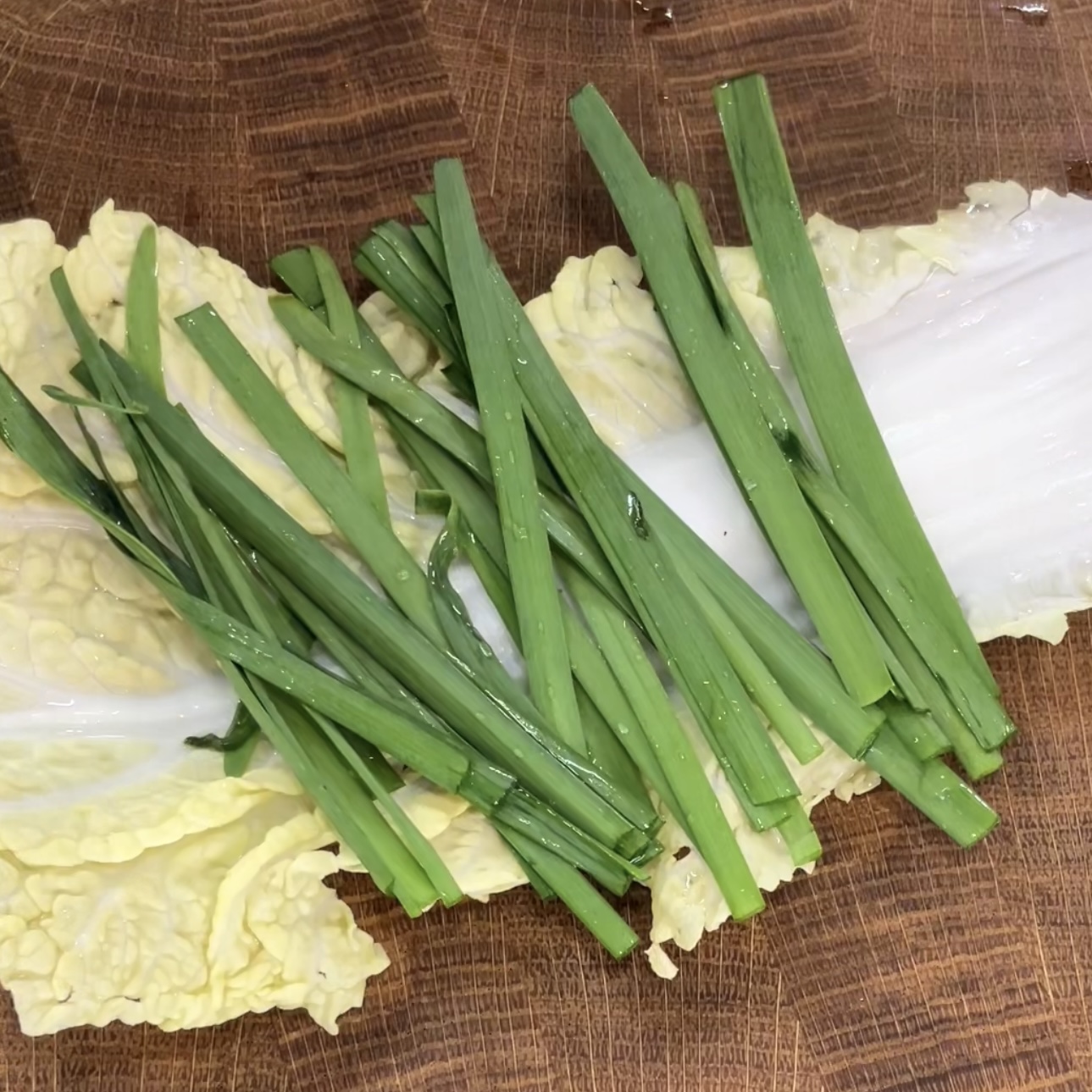 1. 배추 5장, 부추 두 주먹, 고기 5장을