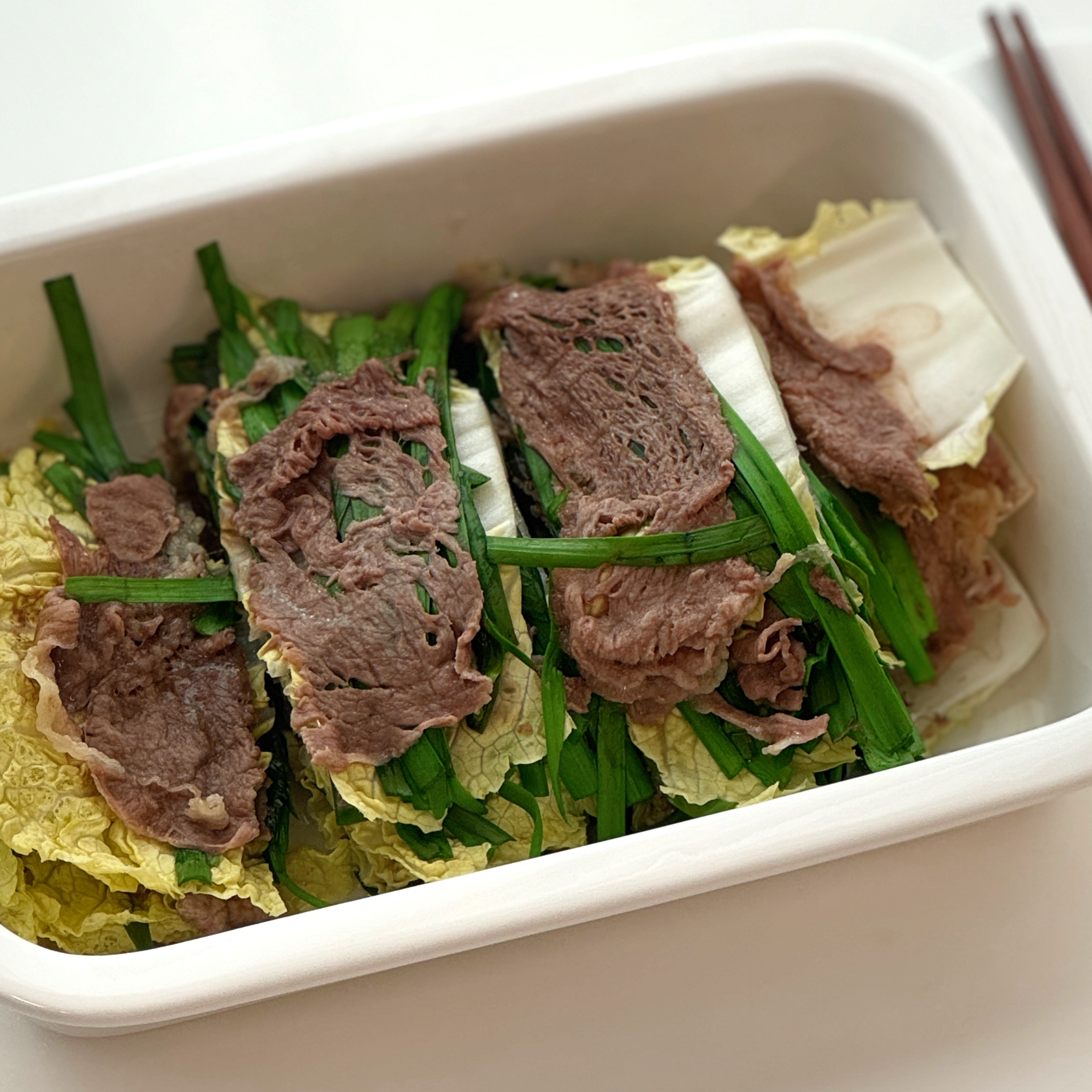 전자레인지 5분 만에 완성되는 소고기 배추찜입니다.