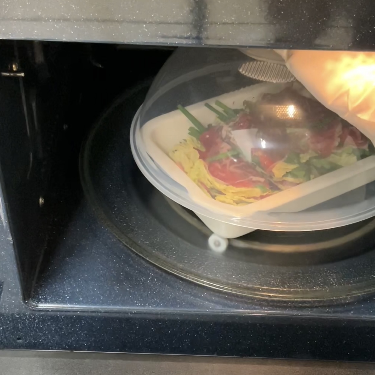뚜껑을 덮어주고 전자레인지 5분 돌려준다.