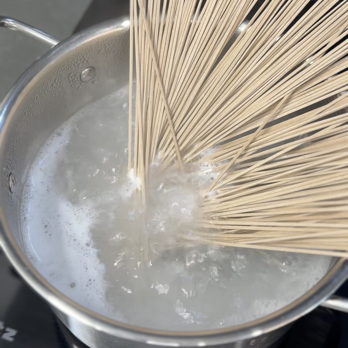 1. 메밀면 80g 을 끓는물에 7분 삶아준다.
