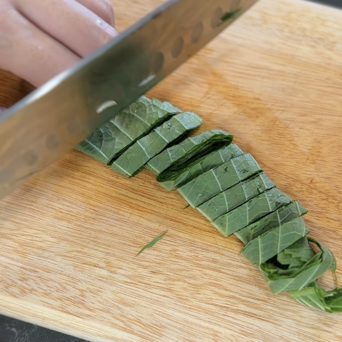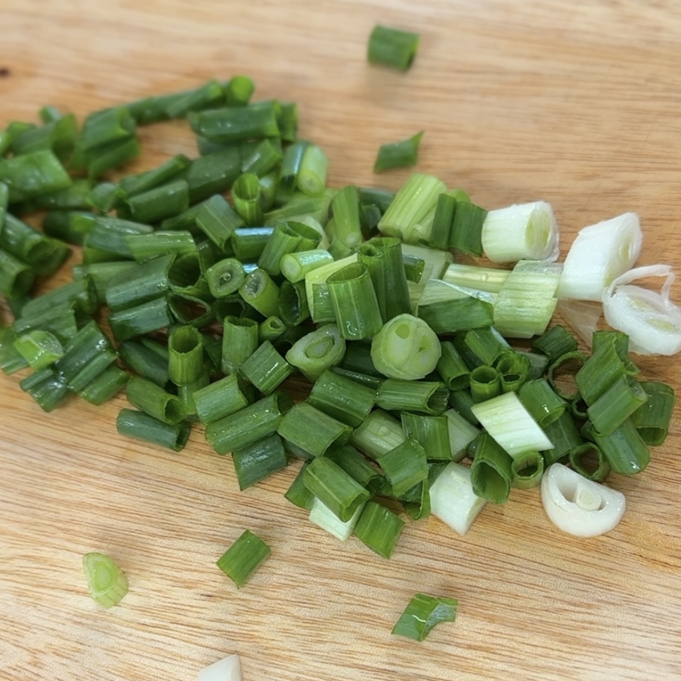 2. 쪽파 큰거 2개, 깻잎 3장을 작게 썰어준다.