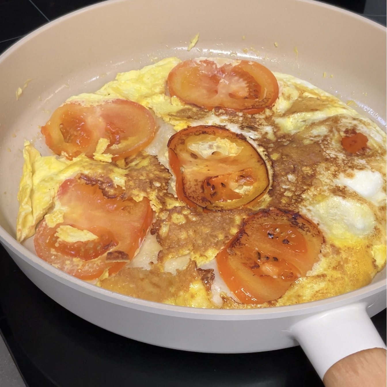 토마토 1개를 썰어서 프라이팬에 익혀준다