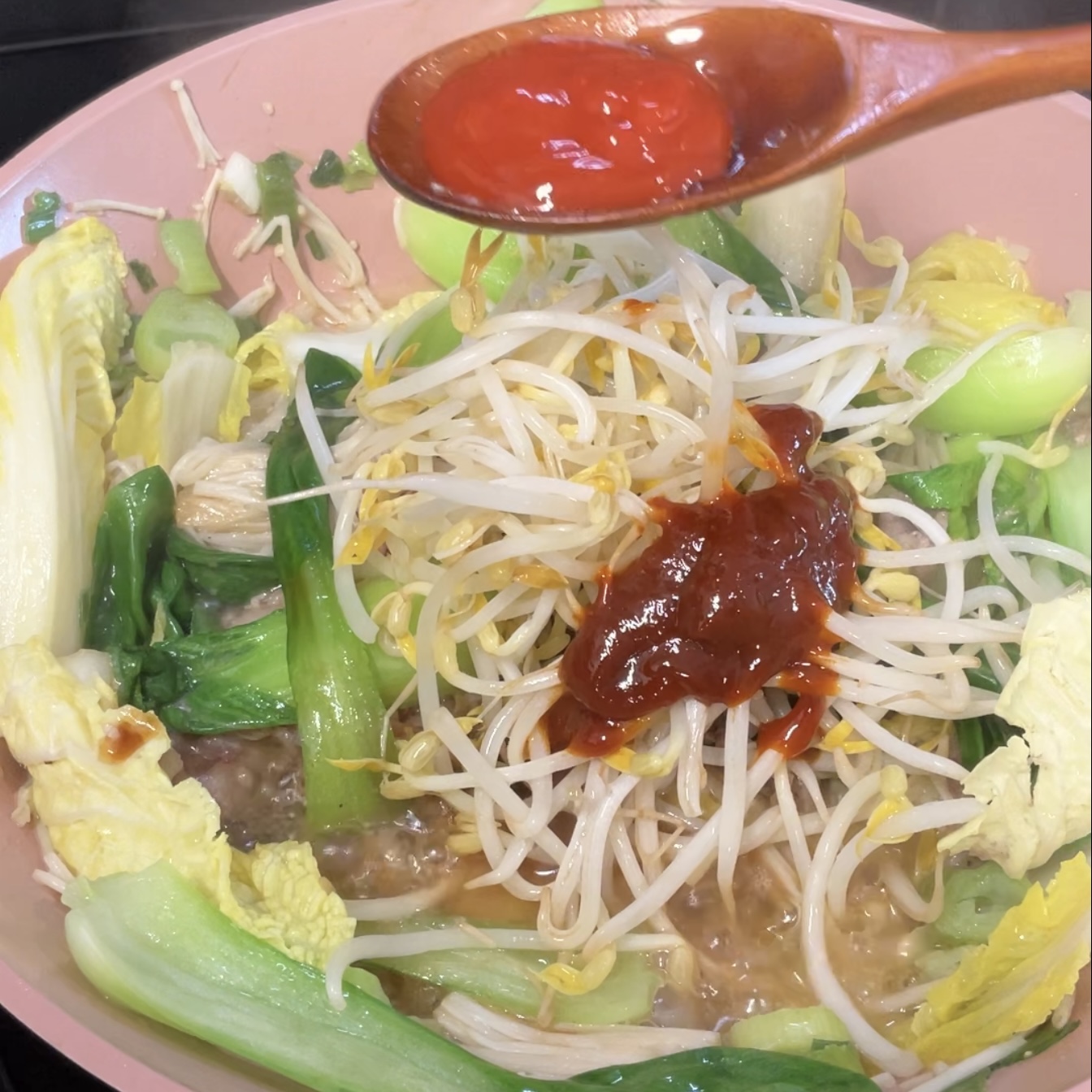 굴소스, 스리라차, 고춧가루 한 스푼씩 넣어준다
