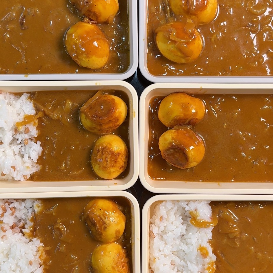 달걀을 삶기만 하면 끝이 아니라, 겉면을 한 번 더 구워 쫀득한 식감을 살리는 달걀카레예요. 양파는 카라멜라이징으로 단맛을 끌어올리고, 카레는 밀가루 없는 제품(비밀카레)로 깔끔하게 마무리합니다.