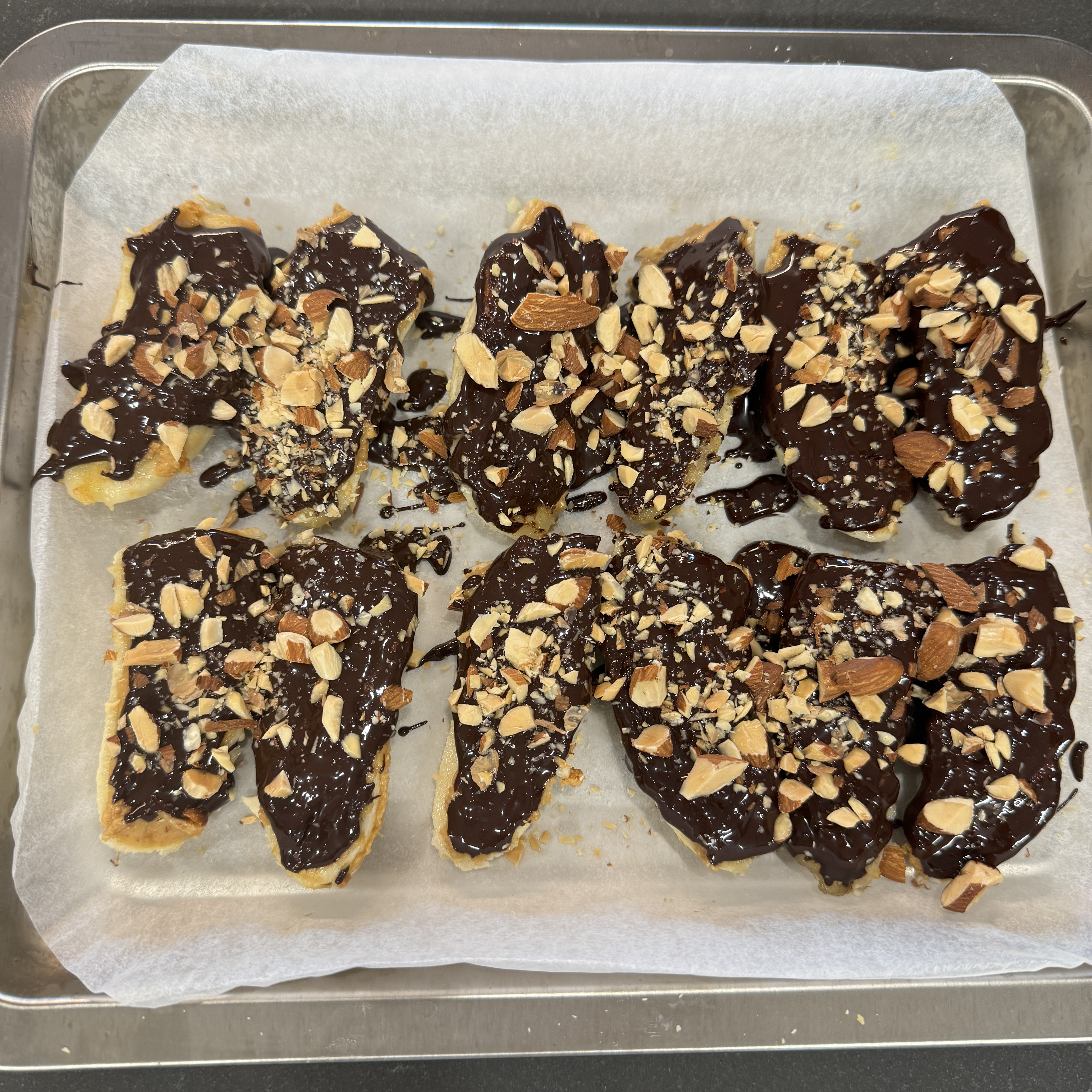 4. 초콜릿도 발라주고 그 위에 아몬드 뿌려준다