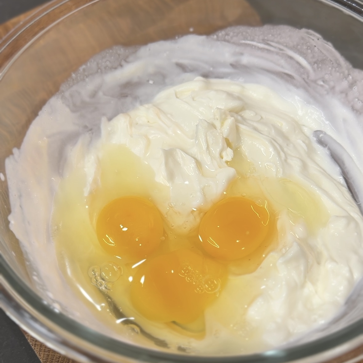2. 달걀 2개와 노른자 1개를 넣고
