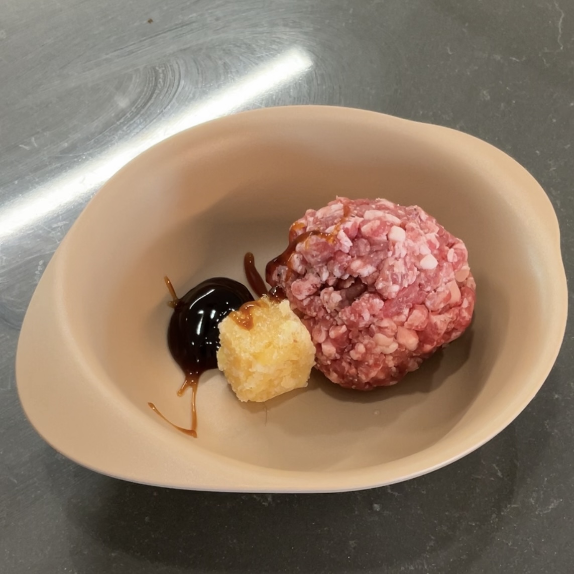 2. 다짐육 70g에 저당굴소스 1스푼, 다진마늘 1스푼을