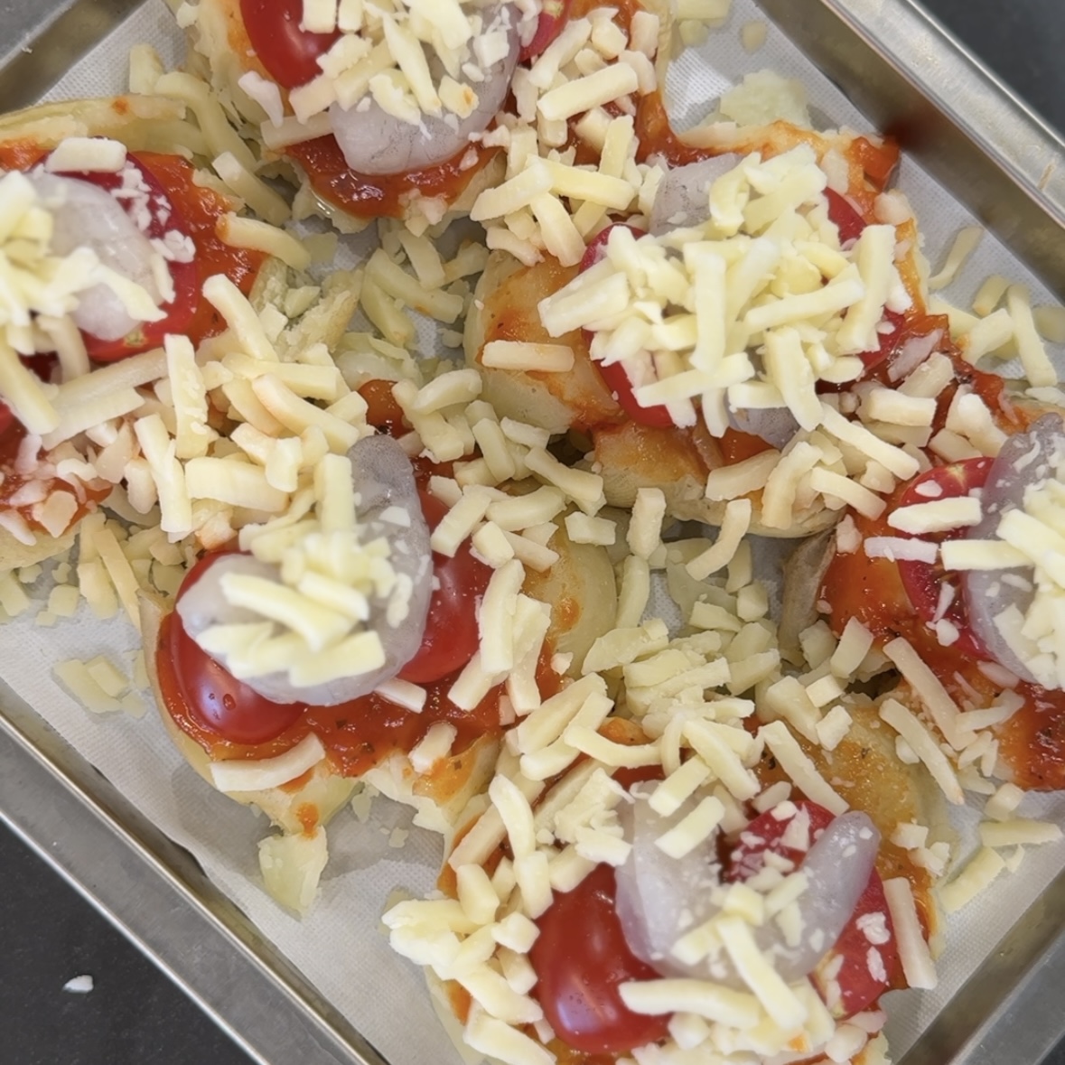 4. 감자위에 토마토소스, 방울토마토 한개,