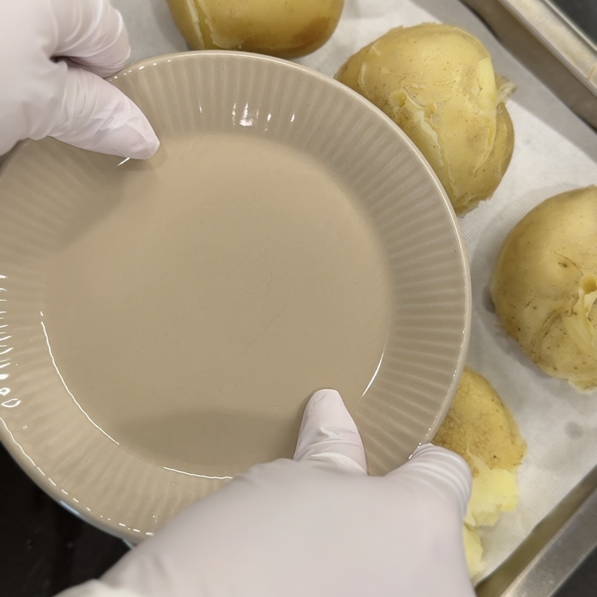 3. 감자는 그릇으로 꾹 눌러준다.