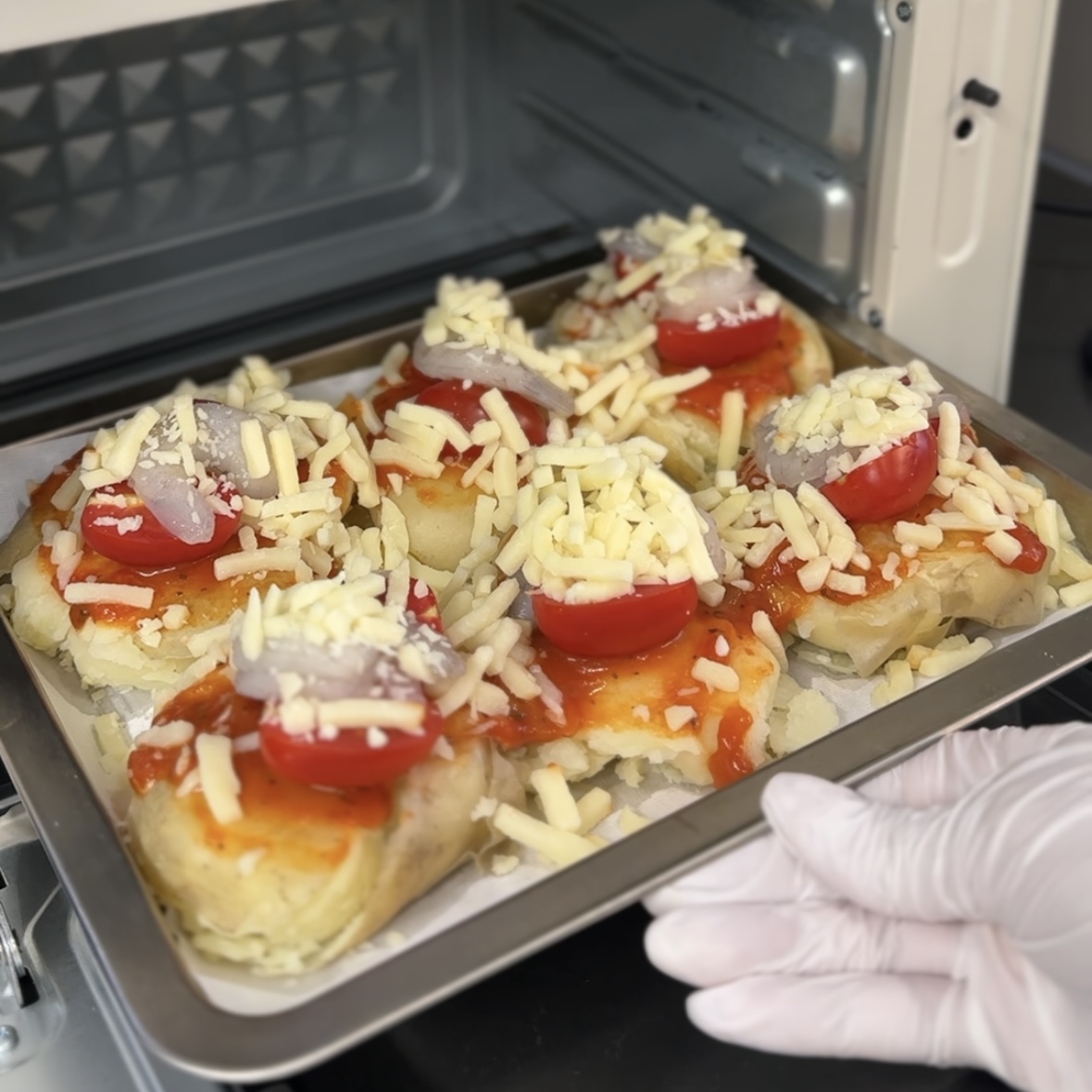 4. 감자위에 토마토소스, 방울토마토 한개,