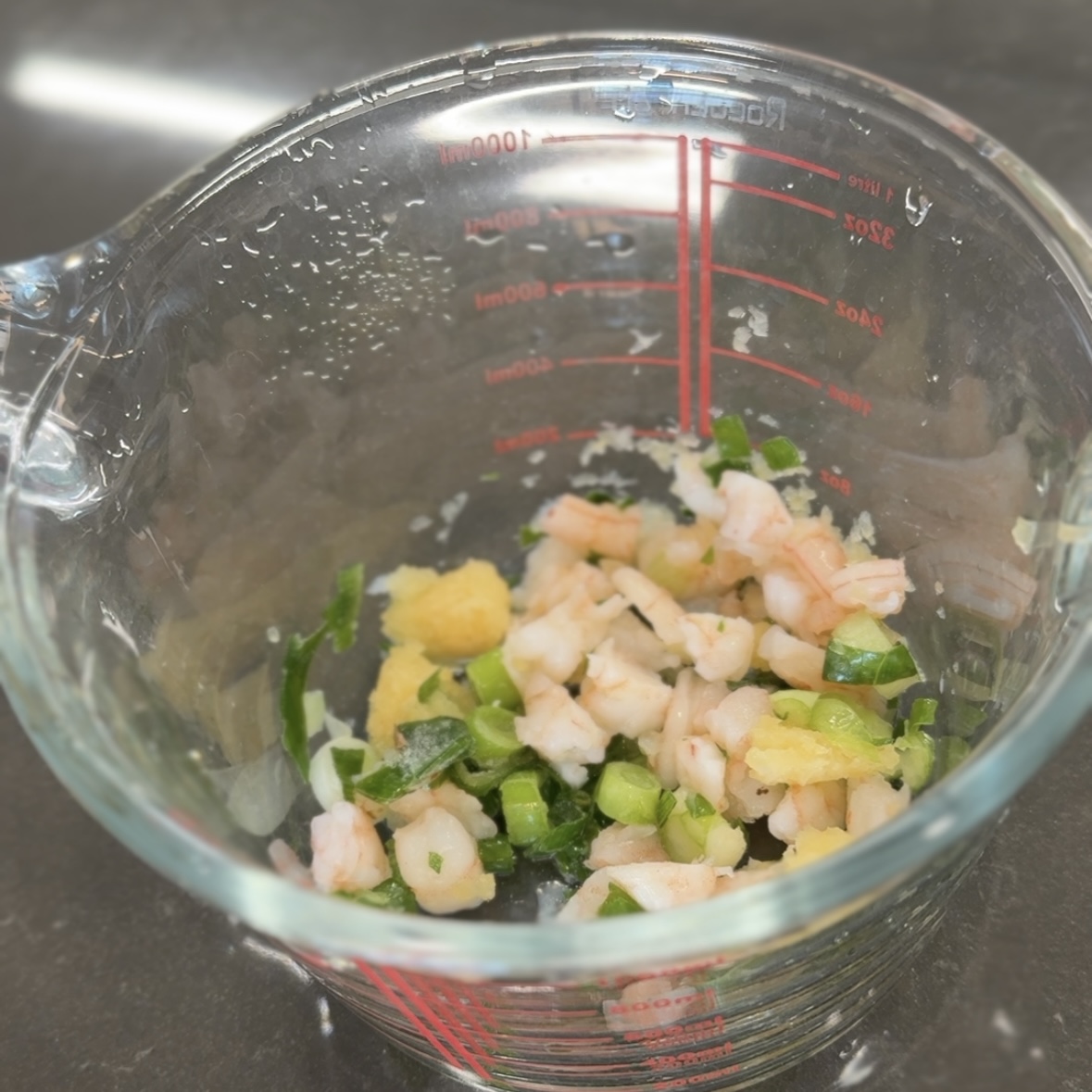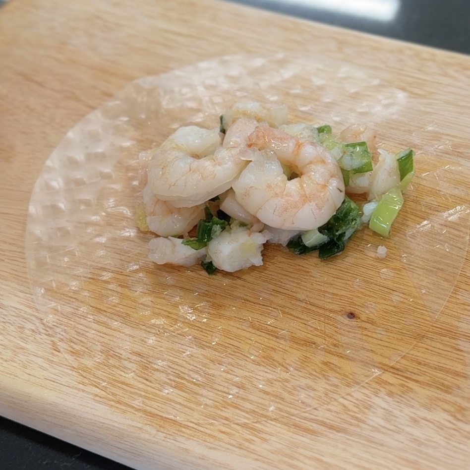 월남쌈 2장, 냉동새우 7마리, 대파 반줌, 다진 마늘 1스푼