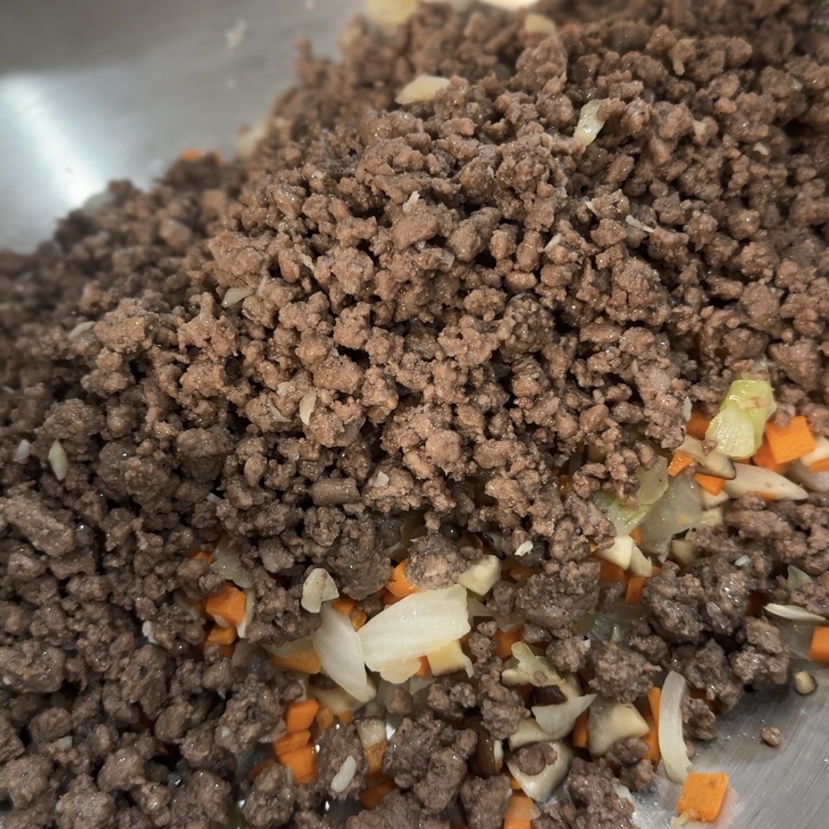 4. 소고기 다짐육 300g을 기름없이 익혀준다.