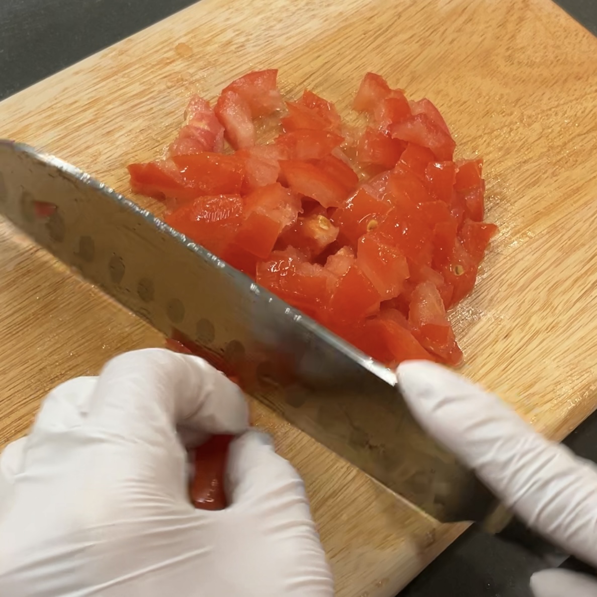 2. 토마토 1개를 반으로 잘라서 수저로 씨를 빼내고