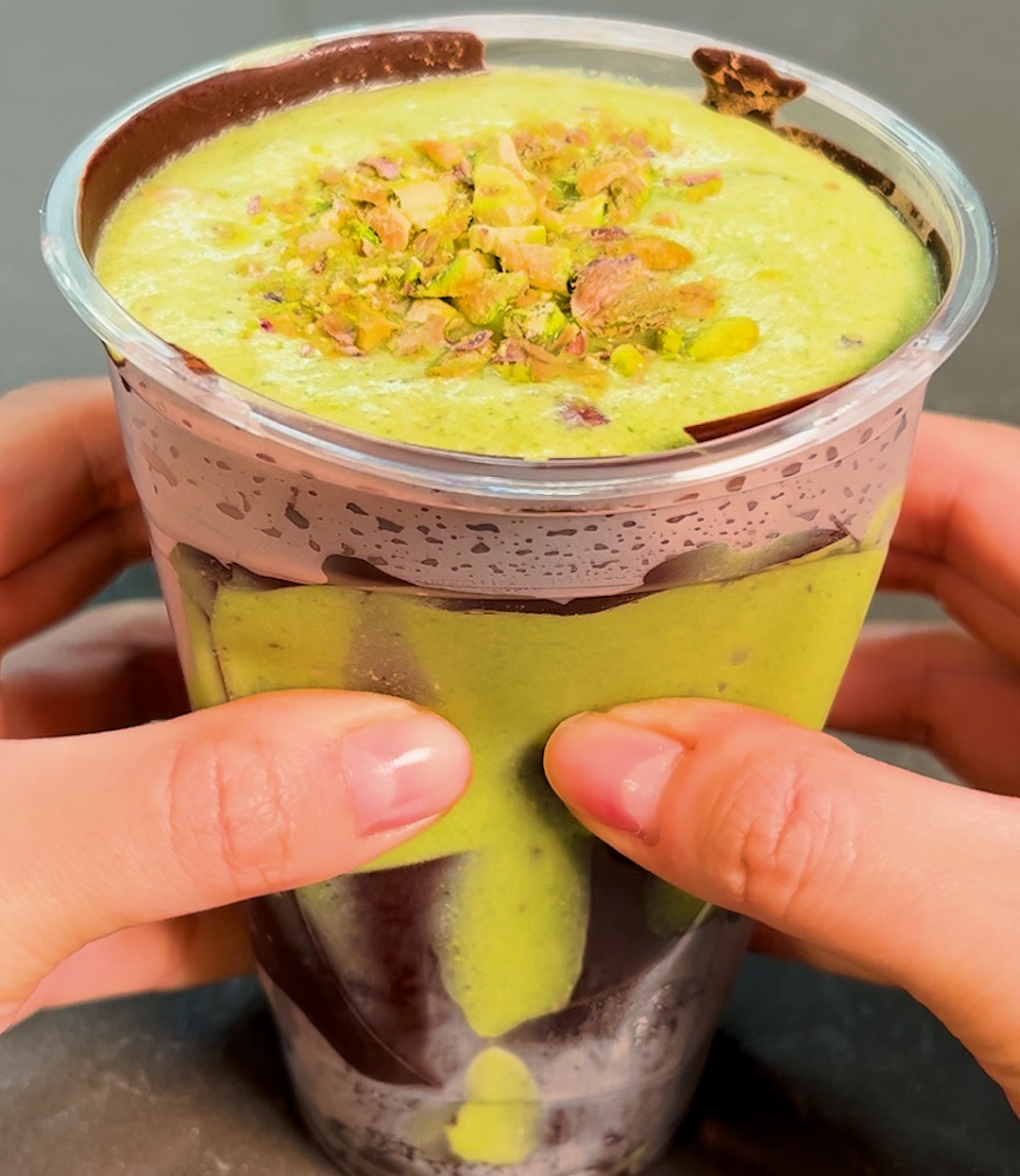 2. 고소한 맛을 위해 피스타치오 버터 1큰술을 넣고, 더 건강하게 즐기고 싶다면 시금치도 함께 추가해 주세요.