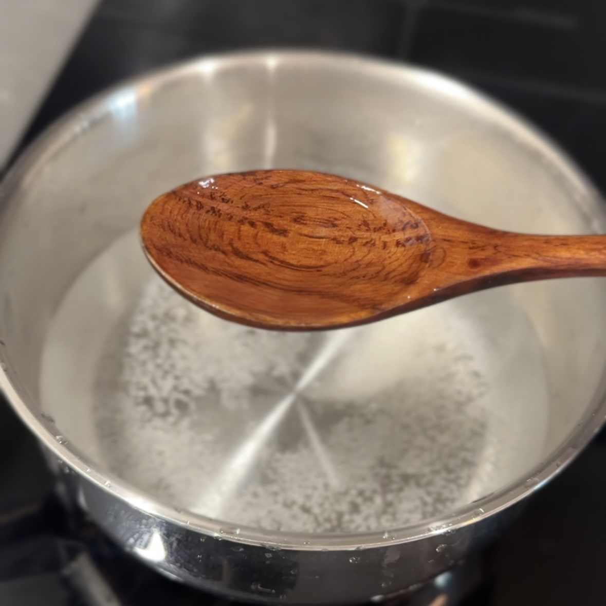 * 물이 끓으면 불을 끄고 수저로 휘휘 저어주면서