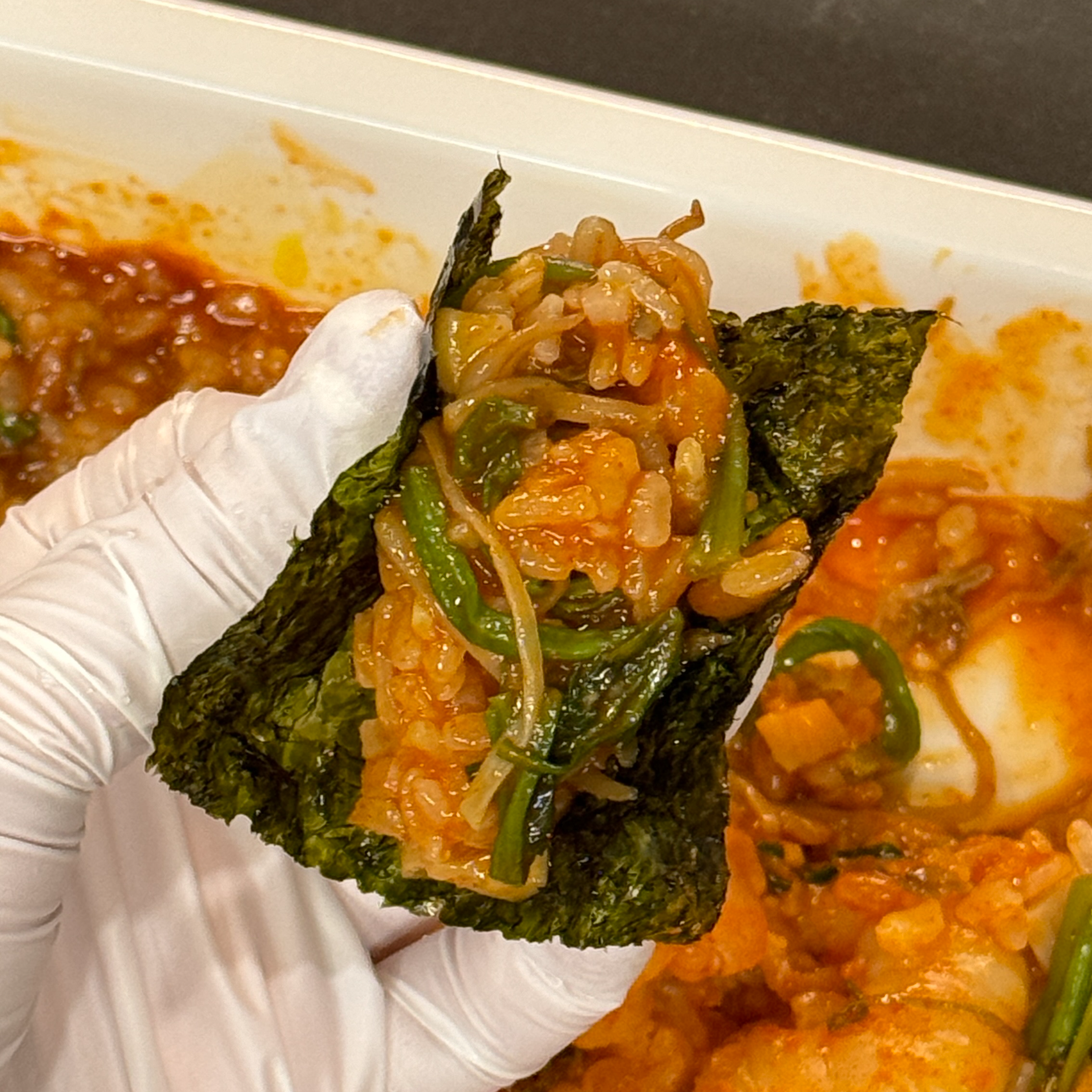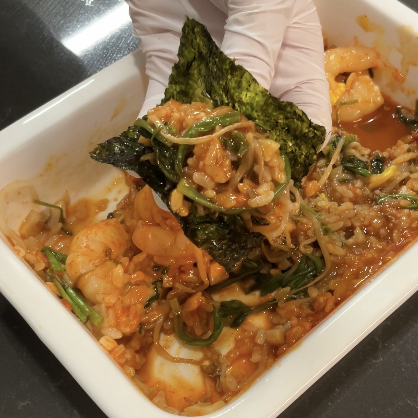 1. 숙주한주먹과 저당밥 100g을 올려준다.