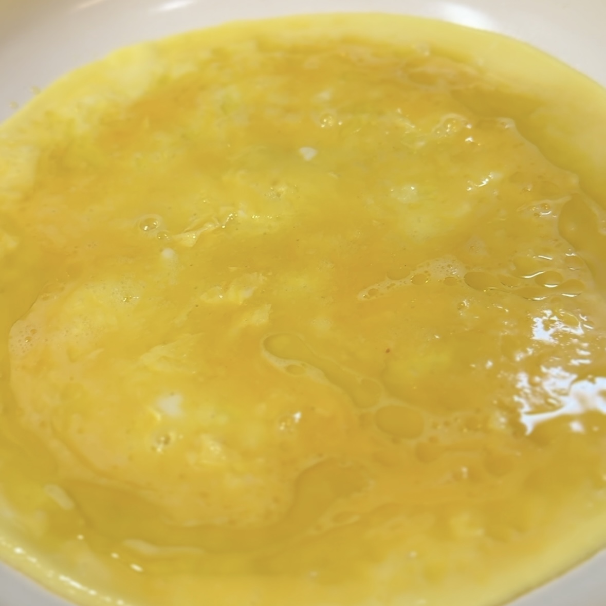 달걀물을 프라이팬에 올리브유 위에 올려준다.