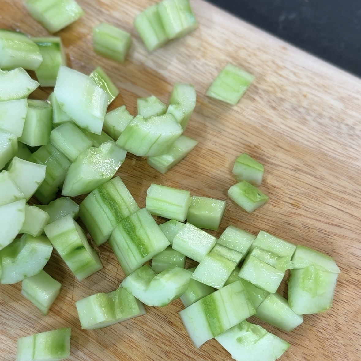 1. 오이 1개는 씨를 제거해서 깍둑모양으로 잘라준다.