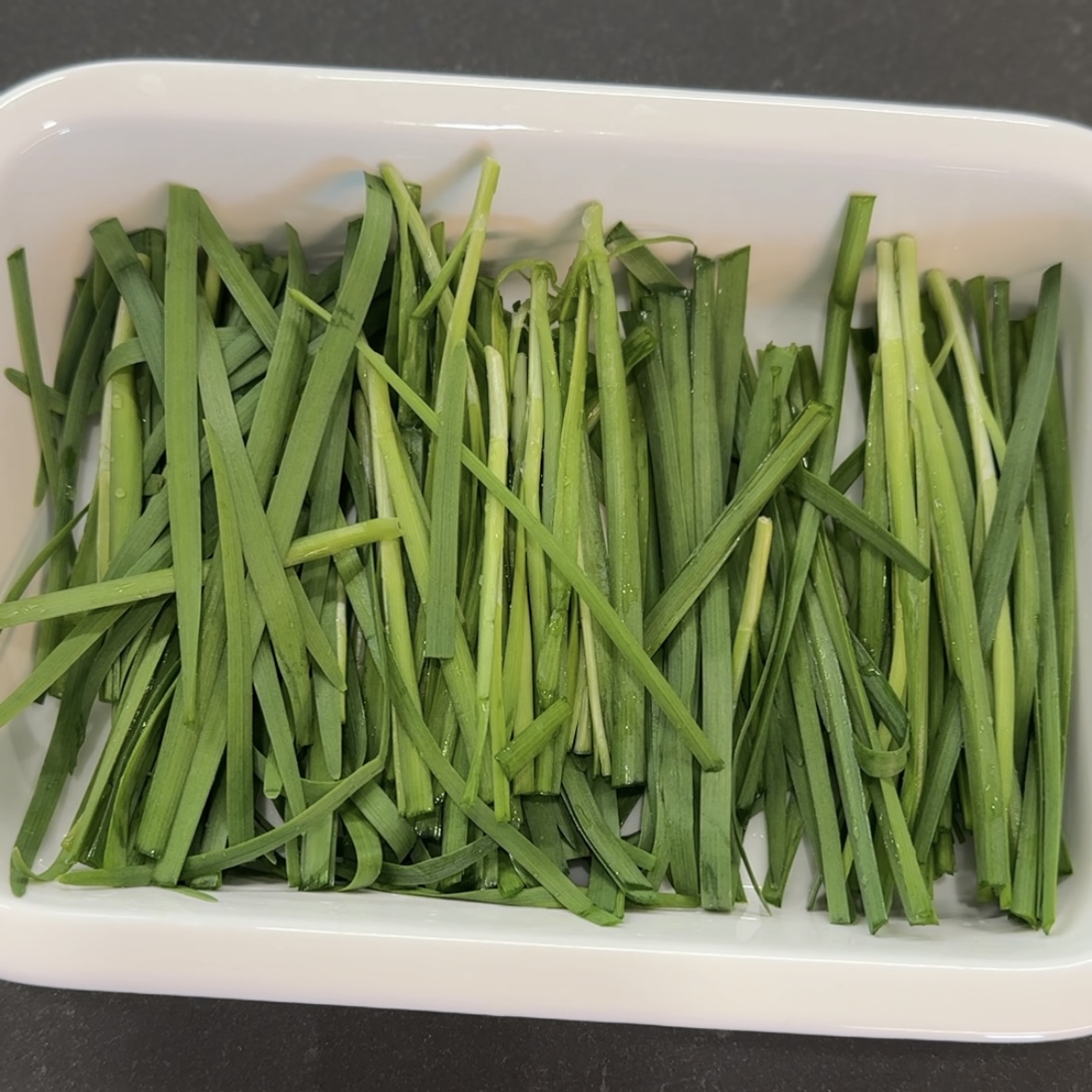 1. 부추 한 줌을 그릇 크기에 맞게 잘라준다.