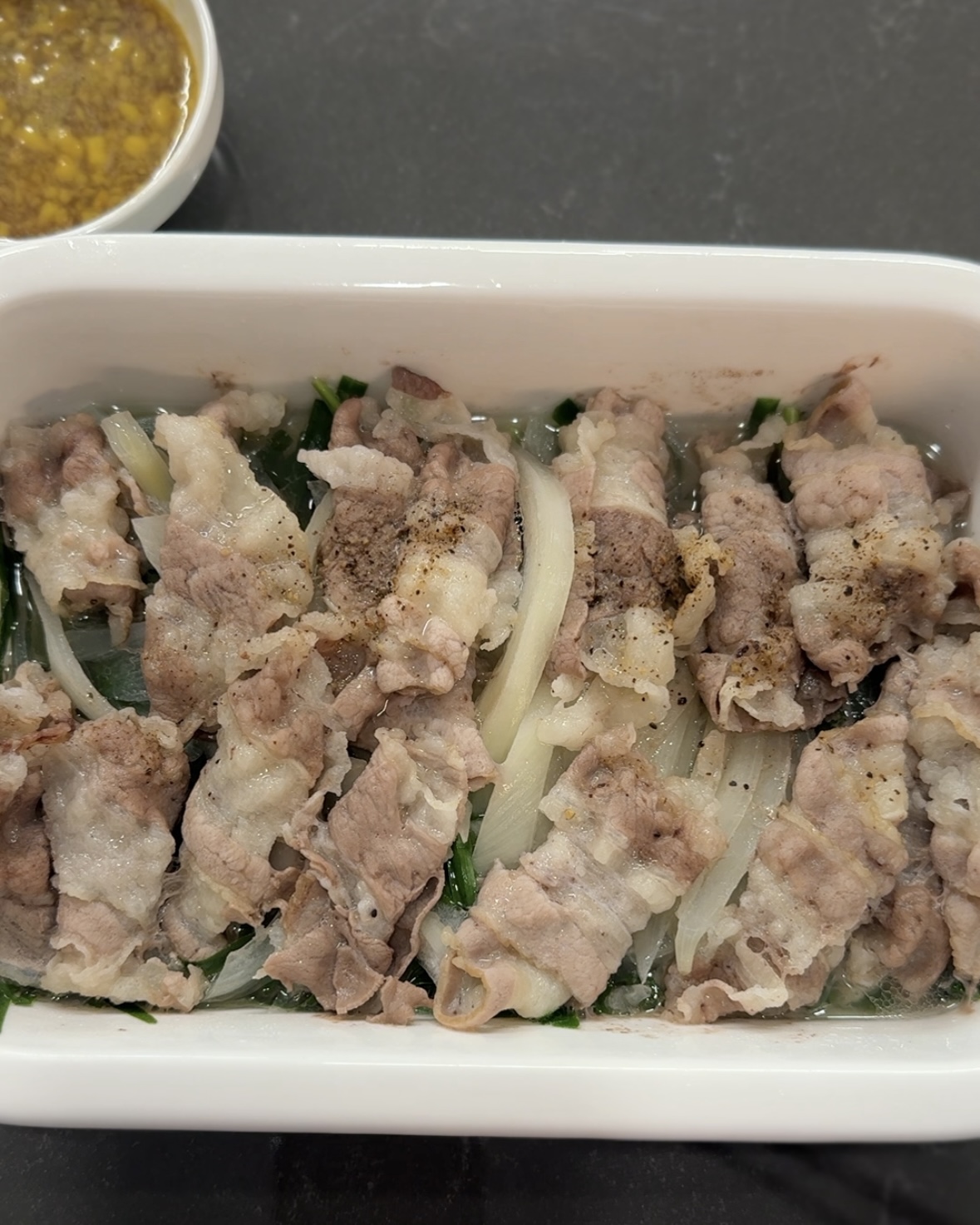 대패목살이나, 우삼겹을 16장 정도 올려준다.