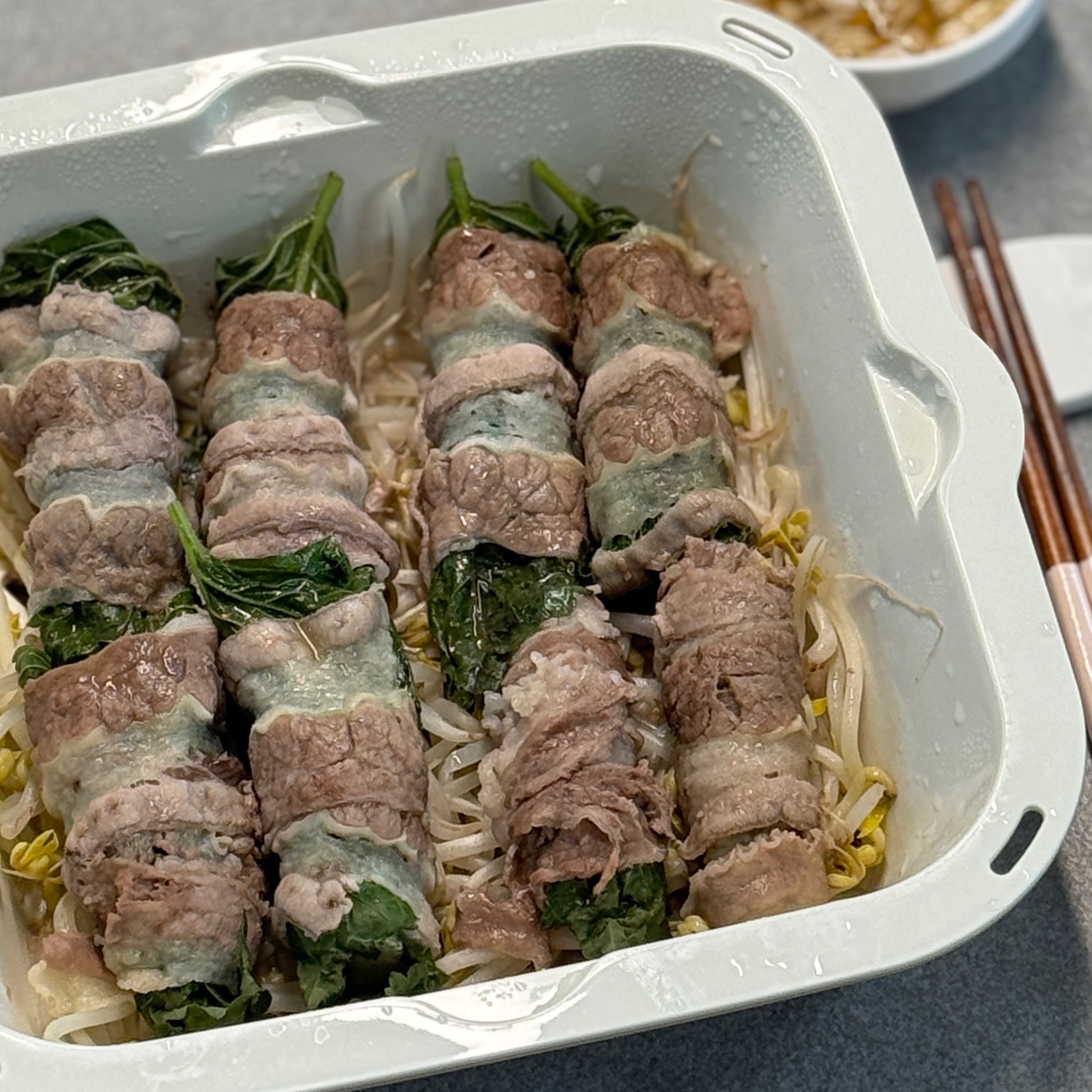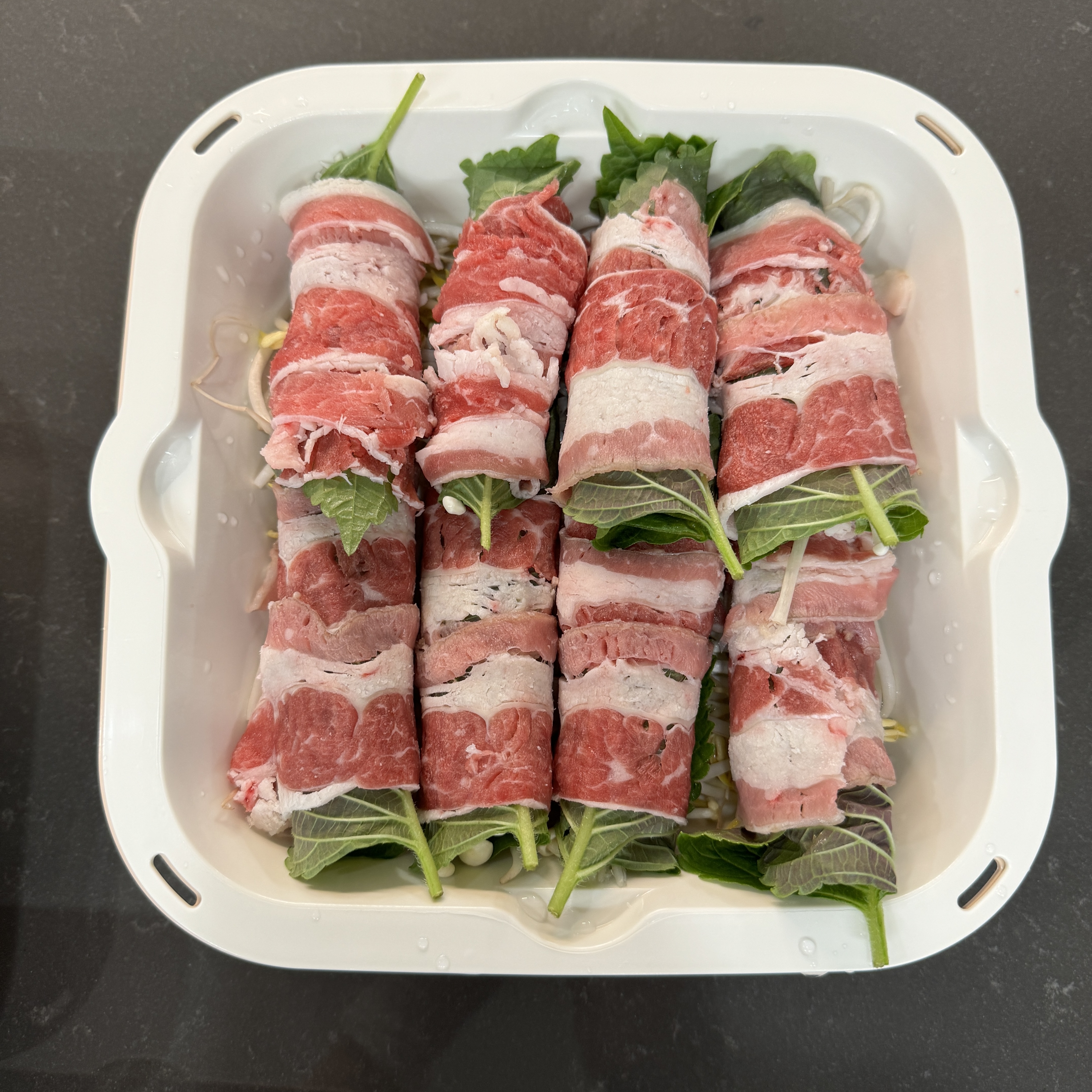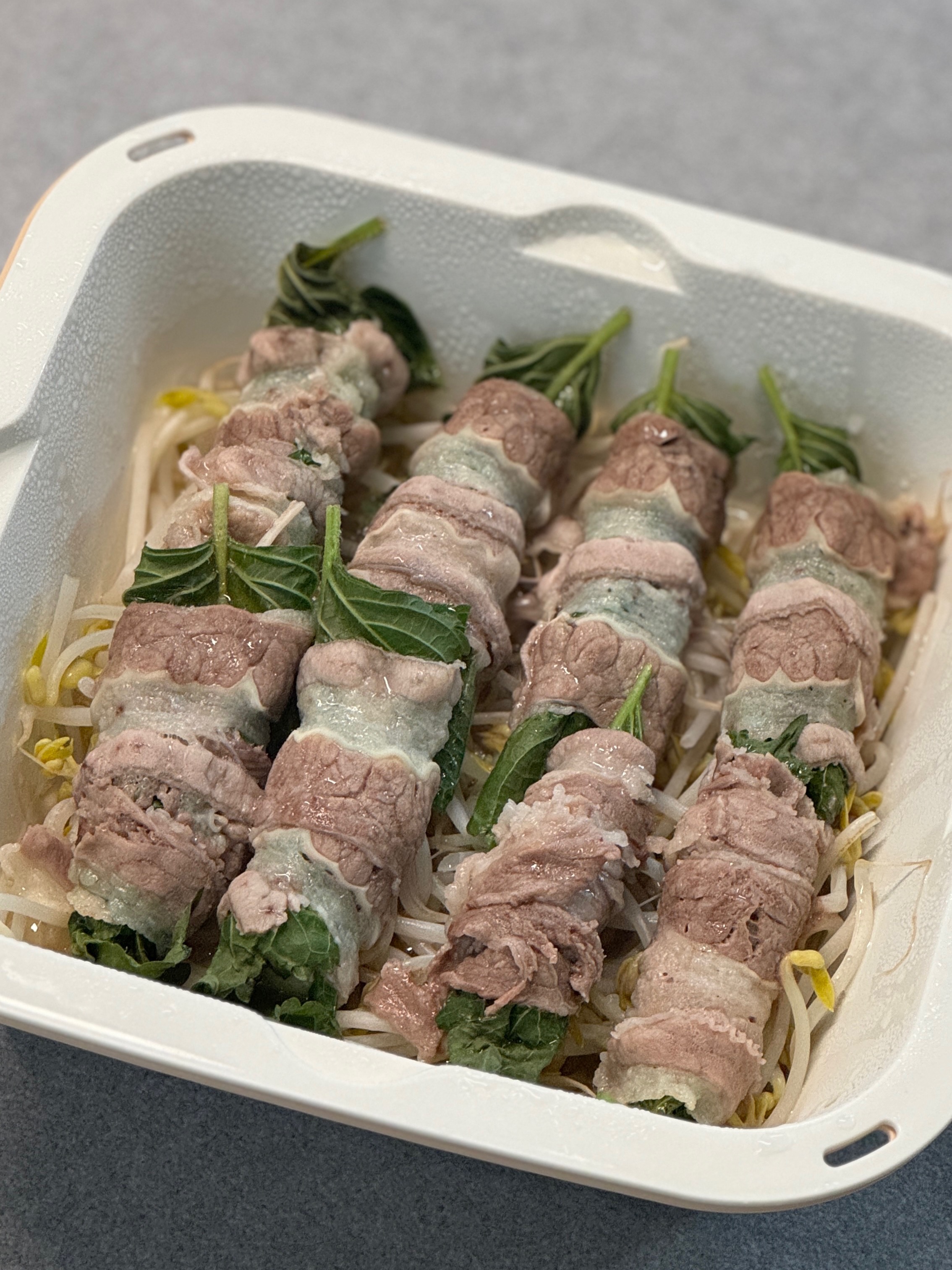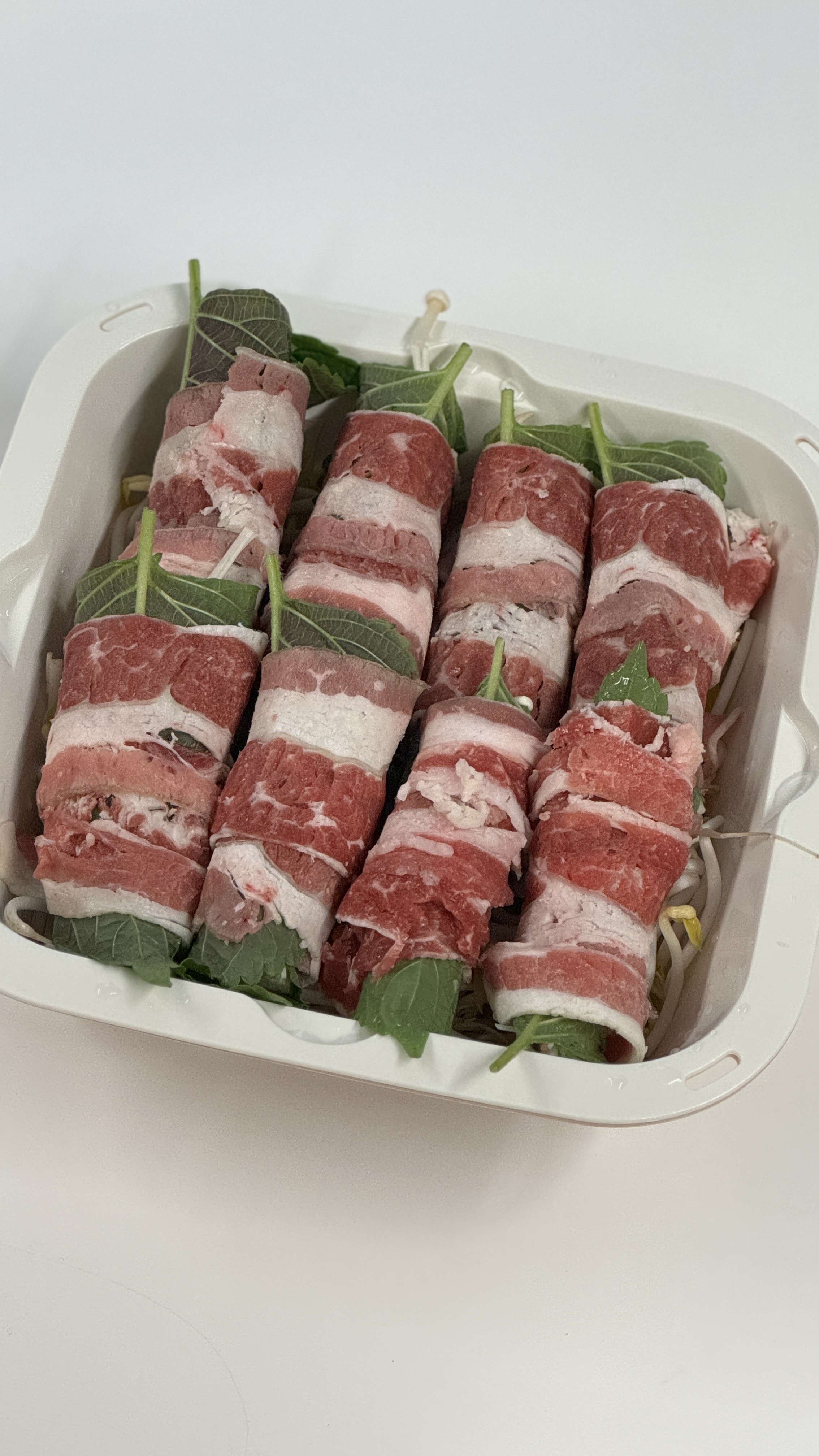 4. 숙주위에 돌돌 말은 고기를 올려준다.