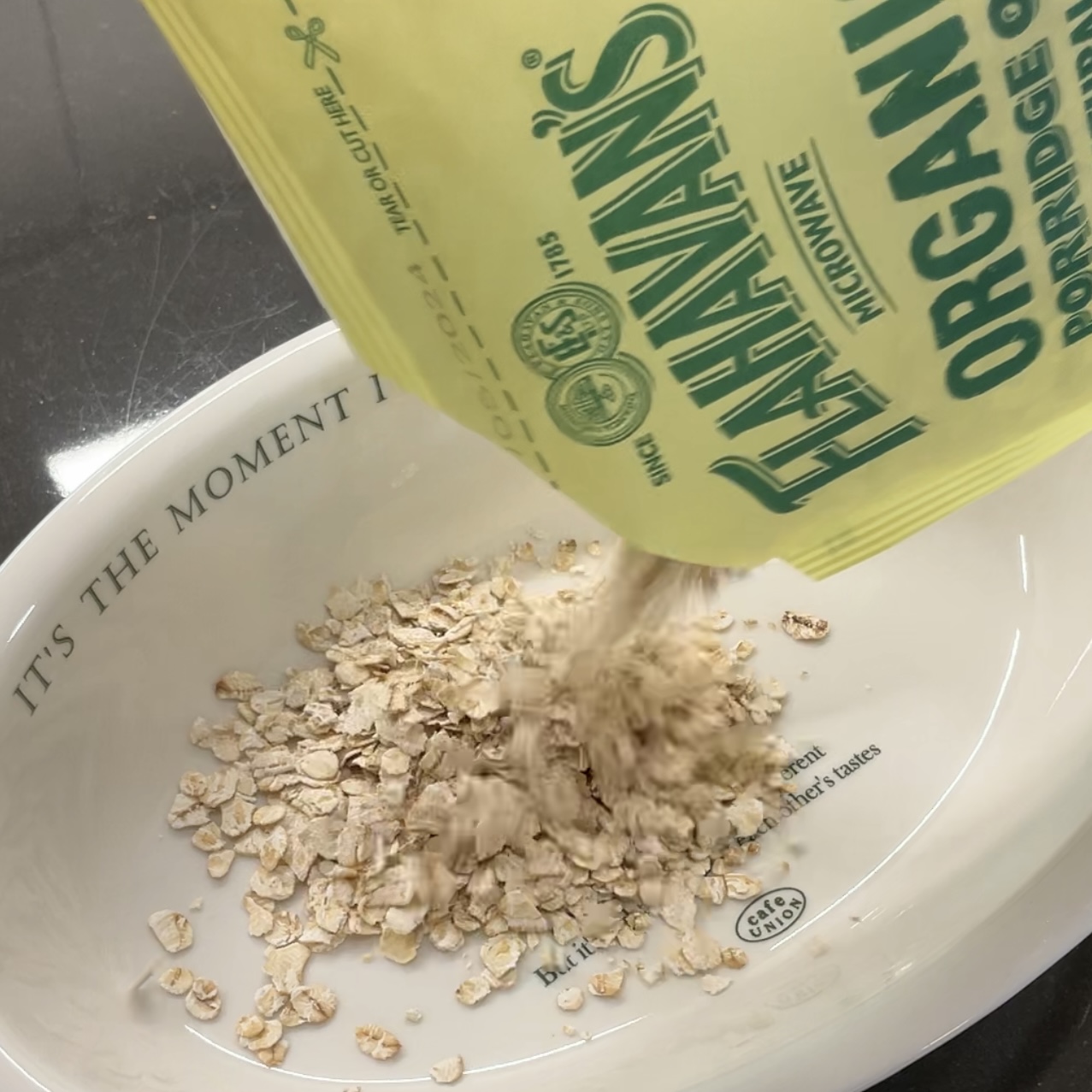 1. 전자레인지 가능용기에 오트밀 35g을 부어준다.