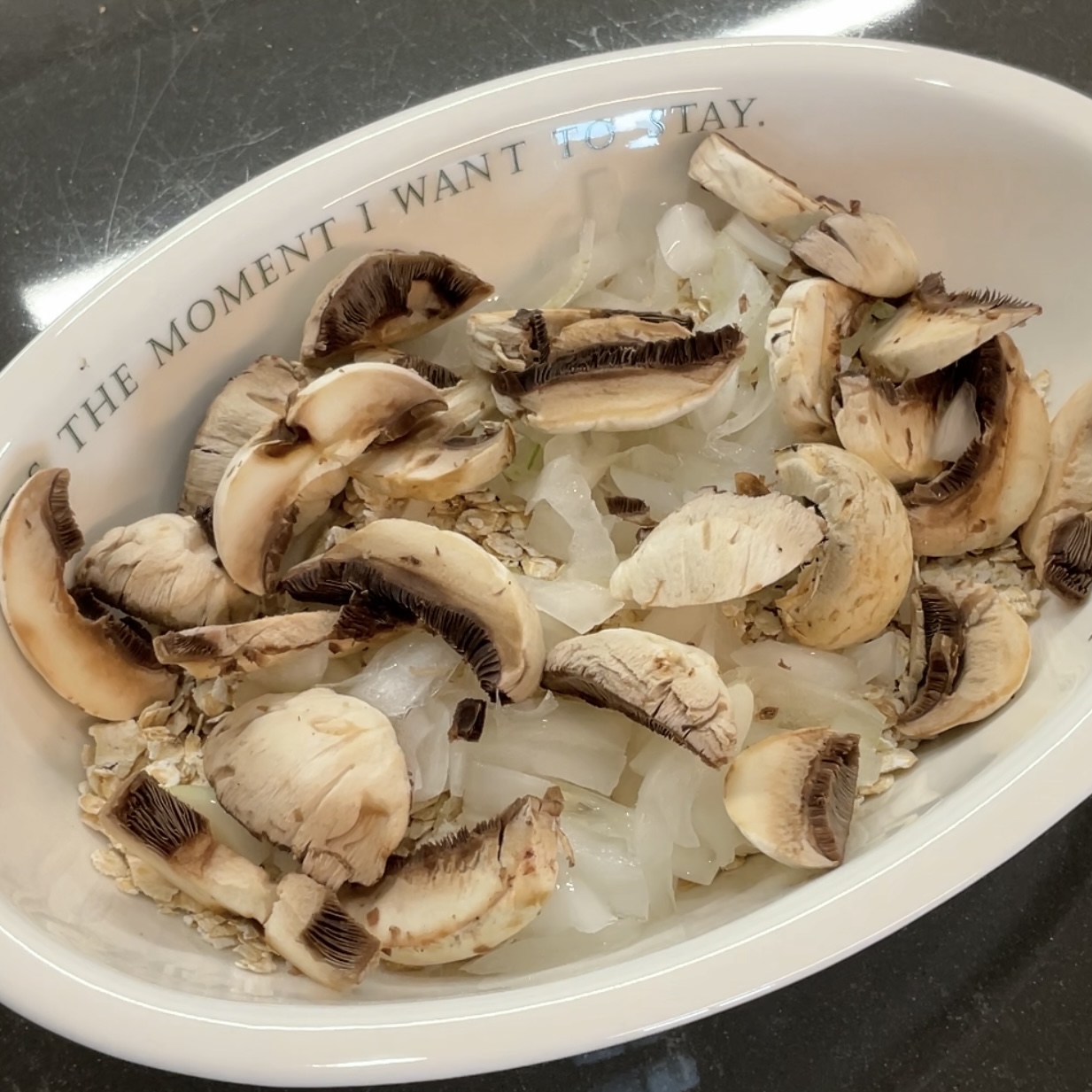 오트밀 35g, 양파 1/5개, 양송이 4-5개
