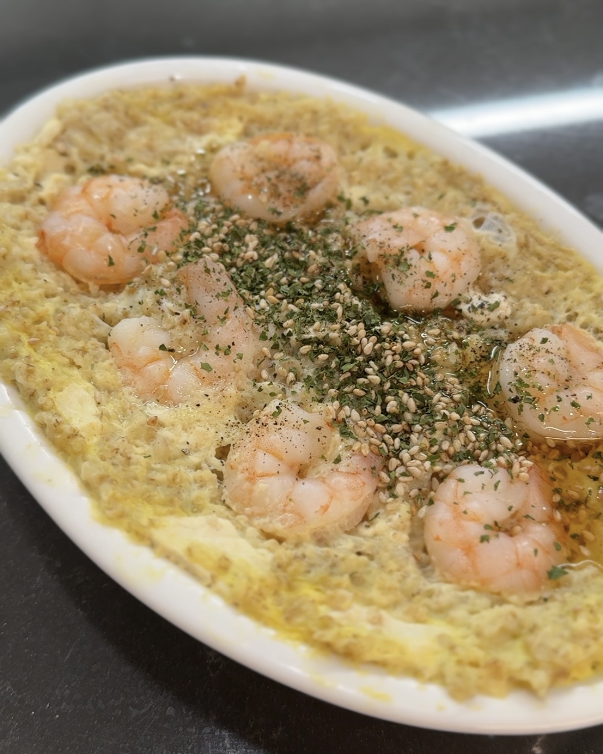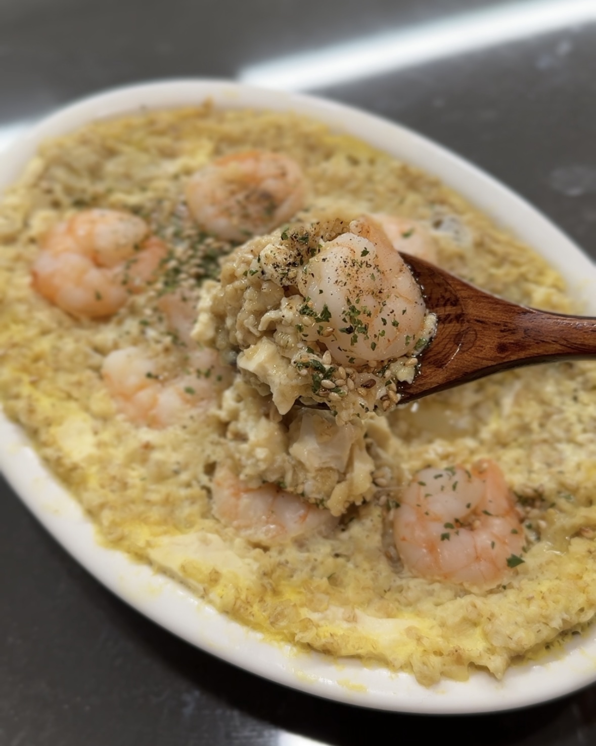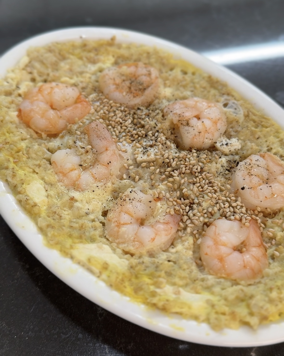 오트밀 35g, 계란 2개, 냉동새우 7개, 물 100ml, 멸치액젓