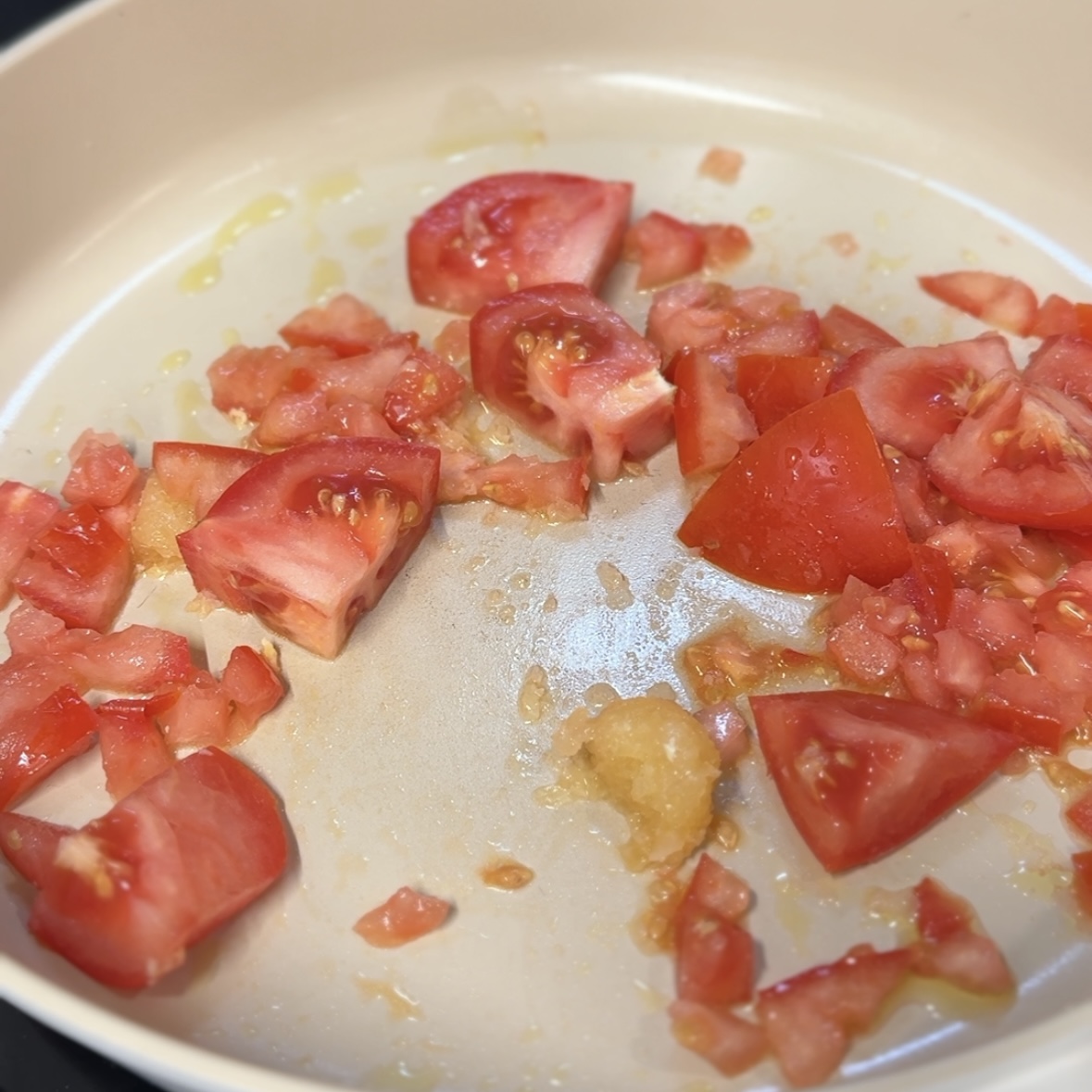 2. 다진마늘 1스푼, 토마토 1개를 넣어준다.